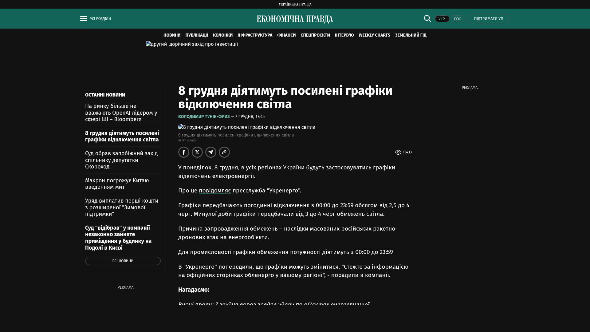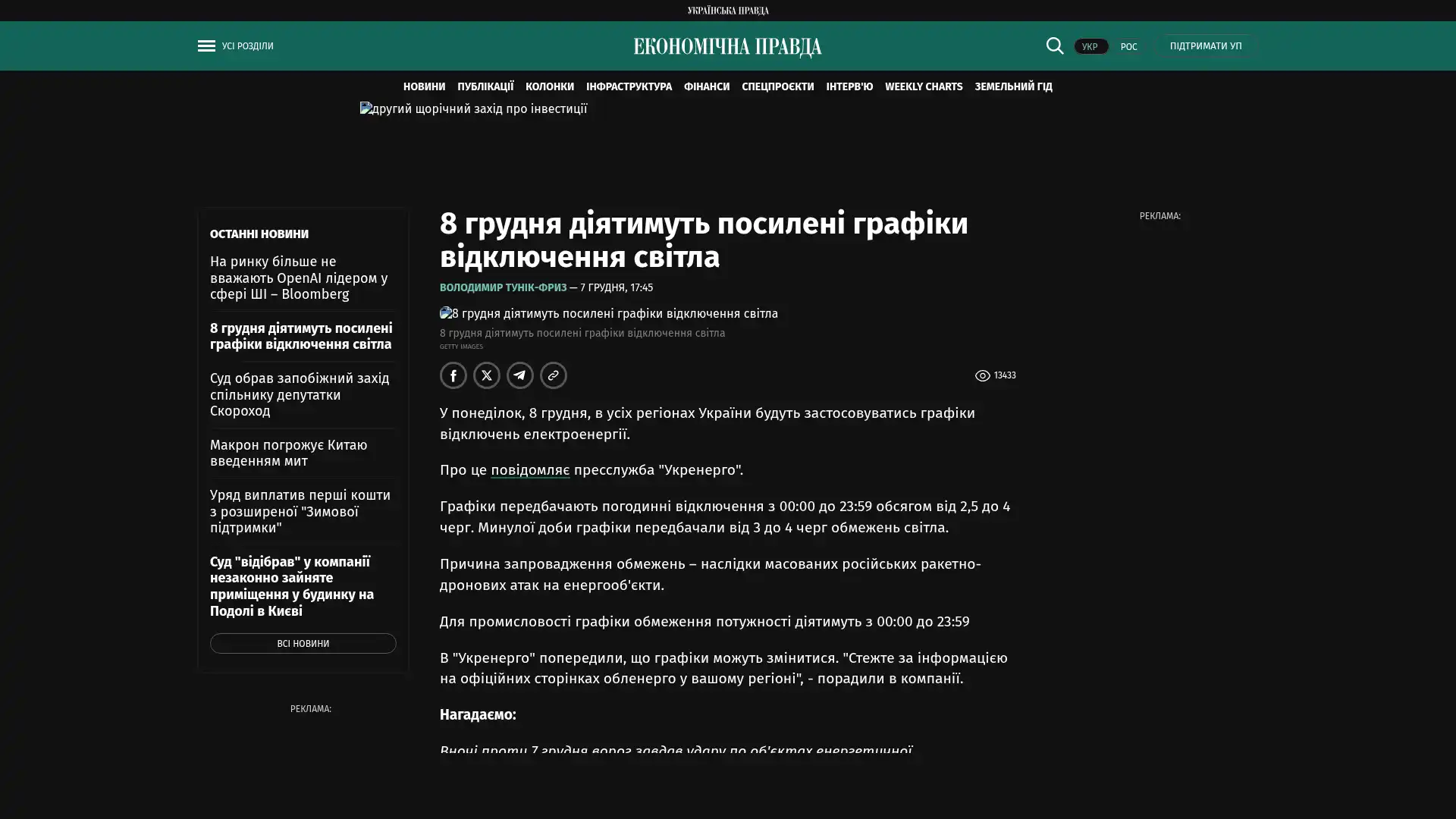 Am Montag, den 8. Dezember, werden in allen Regionen der Ukraine die Pläne für Stromausfälle in Kraft treten.