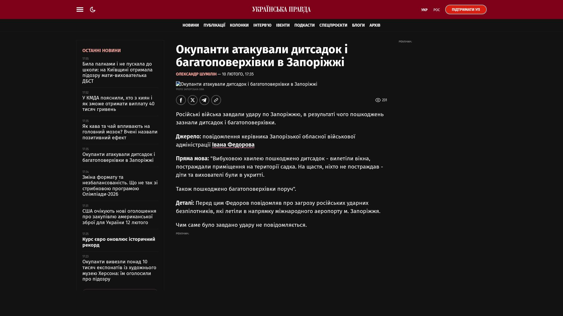 Bildschirmfoto des Originalartikels auf pravda.com.ua