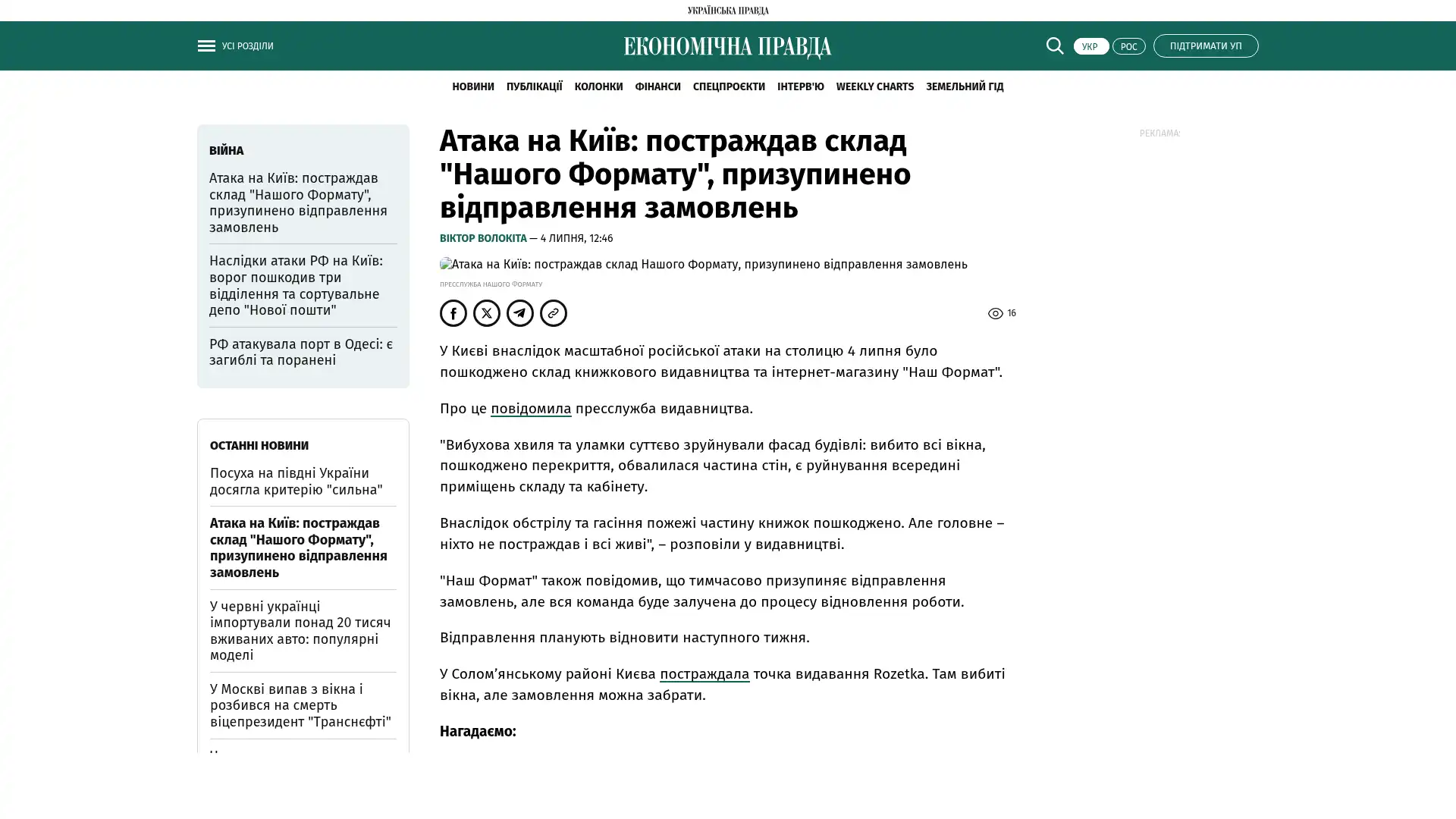 Das Lager des Buchverlags und Online-Shops Nash Format wurde in Kiew infolge eines groß angelegten russischen Angriffs auf die Hauptstadt am 4. Juli beschädigt.