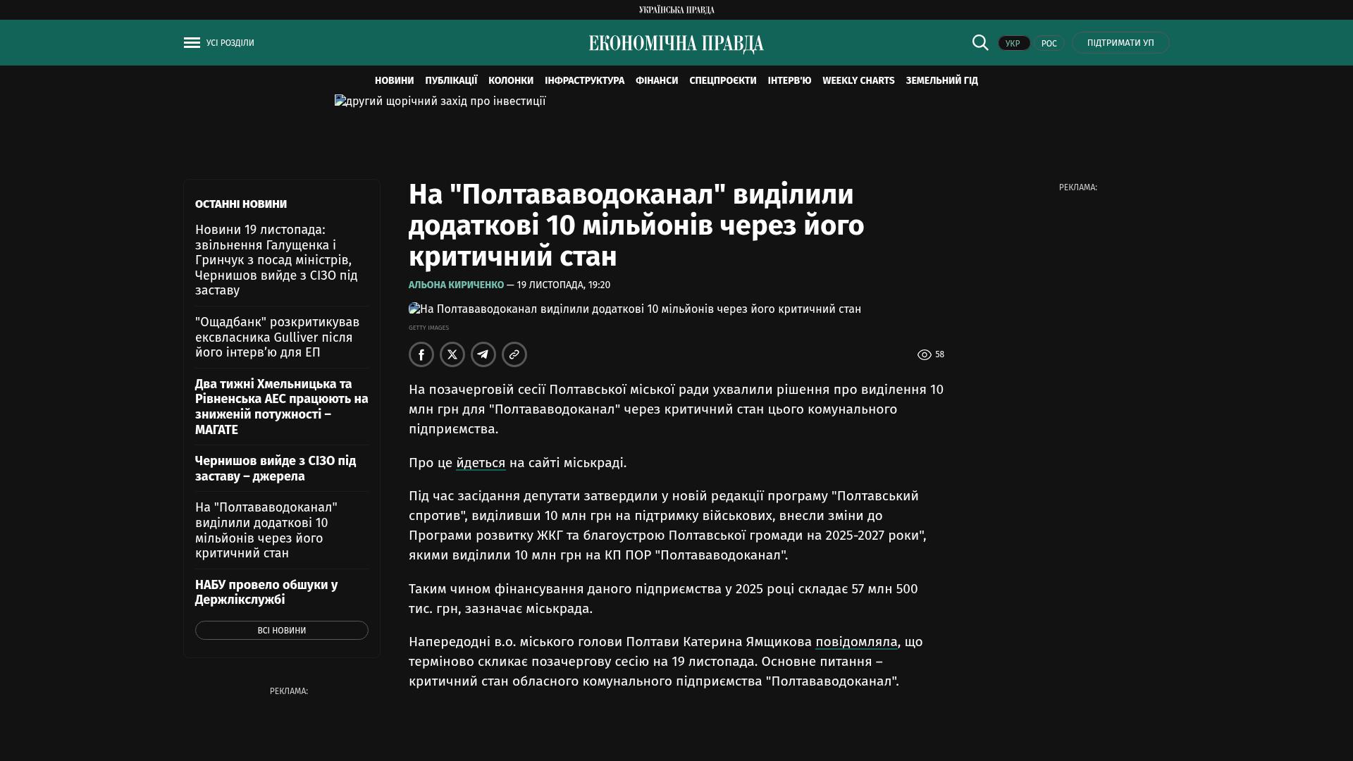 In einer außerordentlichen Sitzung des Stadtrats von Poltawa wurde beschlossen, dem Poltawavodokanal aufgrund seines kritischen Zustands 10 Millionen Hrywnja zuzuweisen.