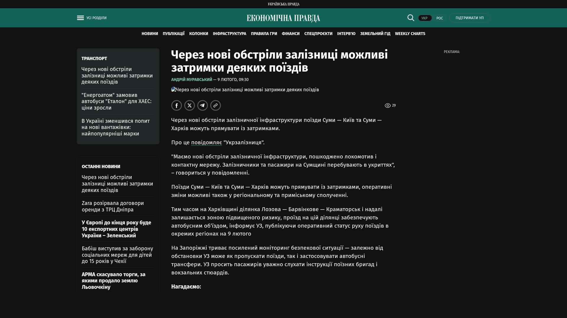 Aufgrund neuer Beschüsse der Eisenbahninfrastruktur kann es zu Verspätungen der Züge Sumy – Kiew und Sumy – Charkiw kommen.