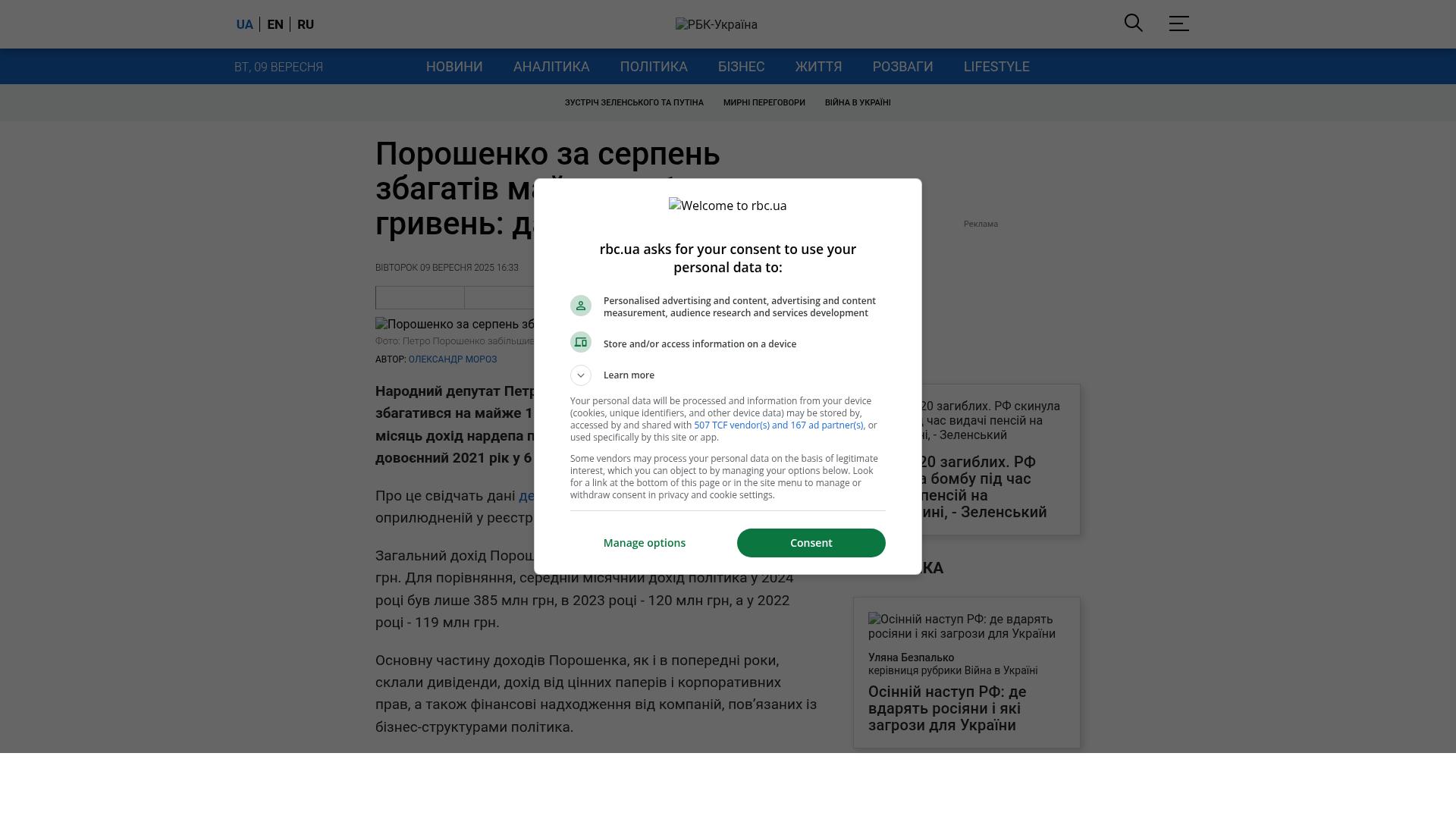 Im August 2025 bereicherte sich der Abgeordnete Petro Poroschenko um fast 1 Milliarde Hrywnja. Damit überstieg das Einkommen des Abgeordneten in nur einem Monat sein Jahreseinkommen für das gesamte Vorkriegsjahr 2021 um das 6-fache.