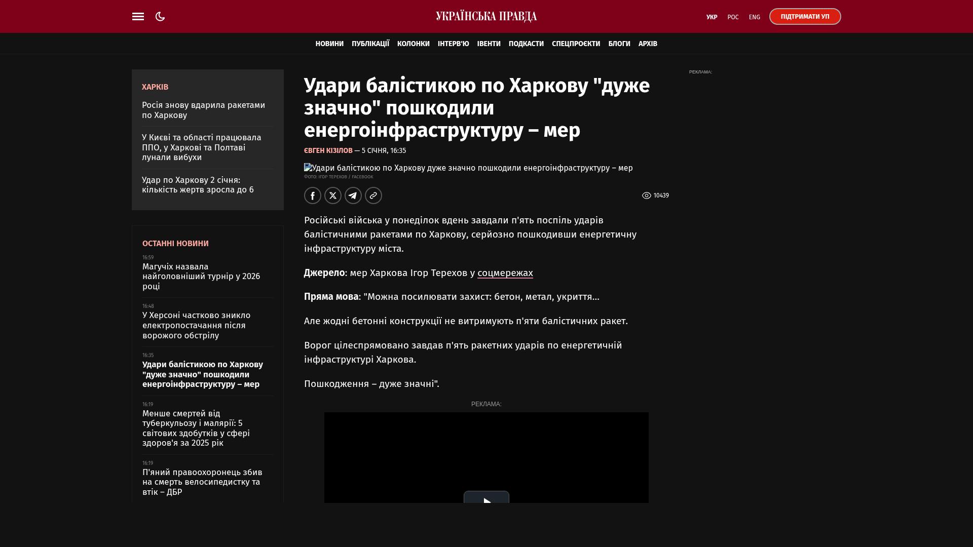 Der Feind hat absichtlich fünf Raketenangriffe auf die Energieinfrastruktur von Charkiw gestartet.