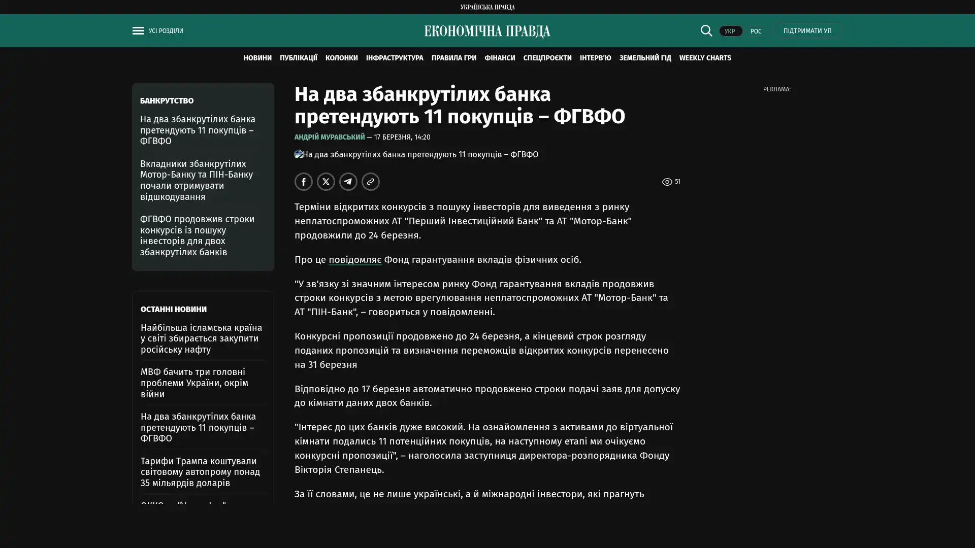 „Aufgrund des großen Interesses am Markt hat der Einlagensicherungsfonds die Fristen für die Ausschreibungen zur Abwicklung der insolventen Aktiengesellschaften „Motor-Bank“ und „PIN-Bank“ verlängert“, heißt es in der Mitteilung.