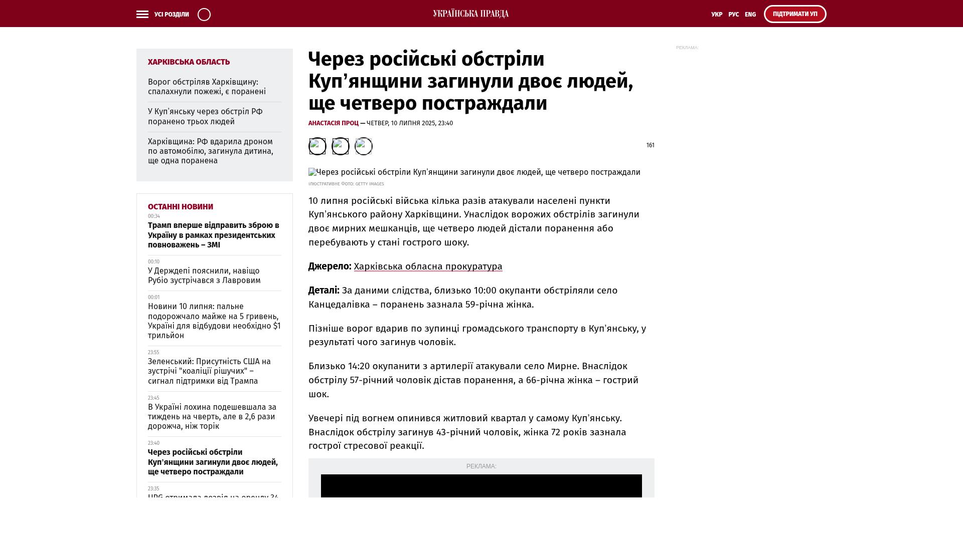 Bildschirmfoto des Originalartikels auf pravda.com.ua