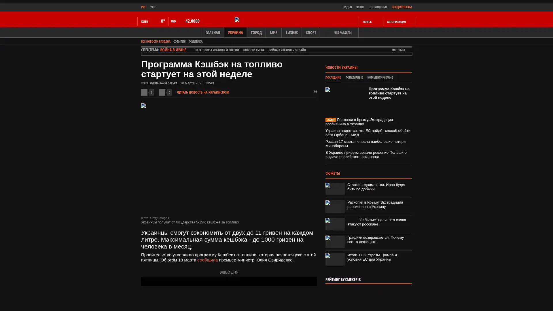 Die Regierung hat das Cashback-Programm für Kraftstoff verabschiedet, das bereits ab diesem Freitag startet. Dies teilte Ministerpräsidentin Julia Swyrydenko am 18. März mit.