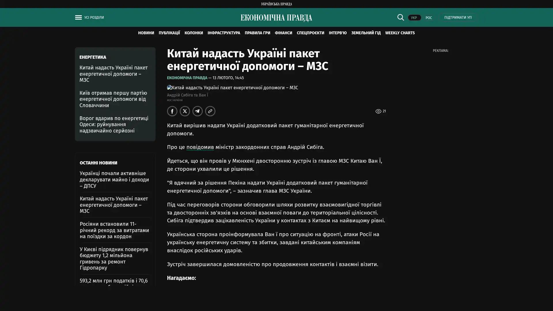 Bildschirmfoto des Originalartikels auf epravda.com.ua
