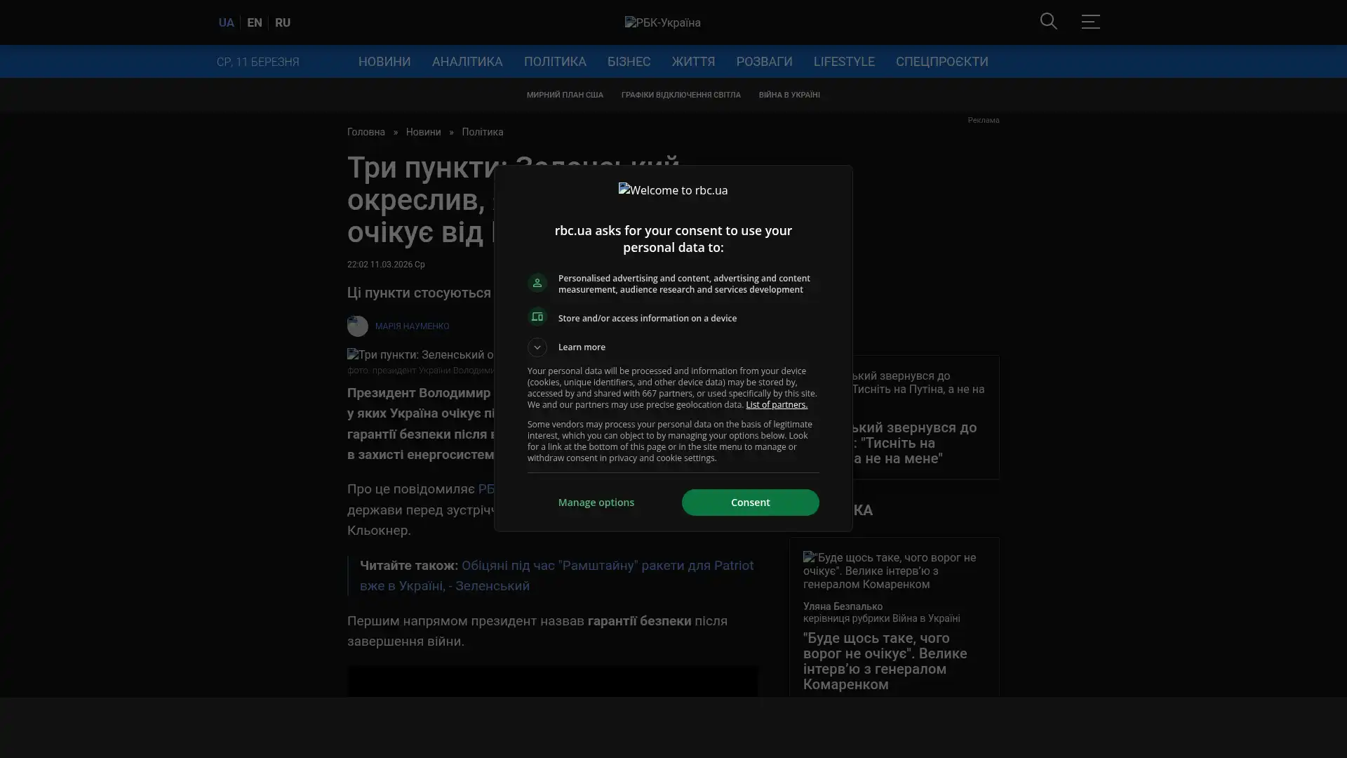 Bildschirmfoto des Originalartikels auf rbc.ua