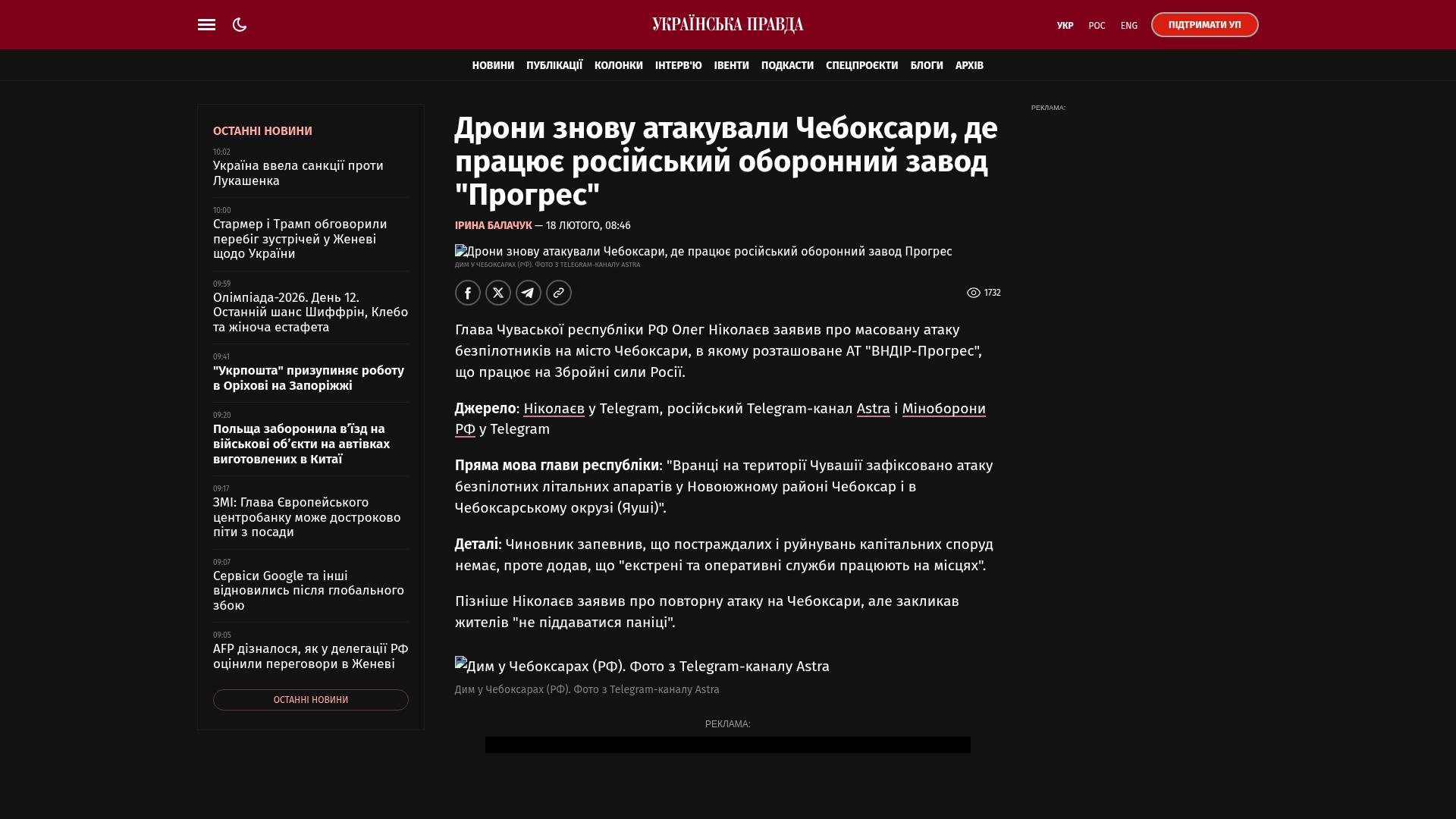 Bildschirmfoto des Originalartikels auf pravda.com.ua