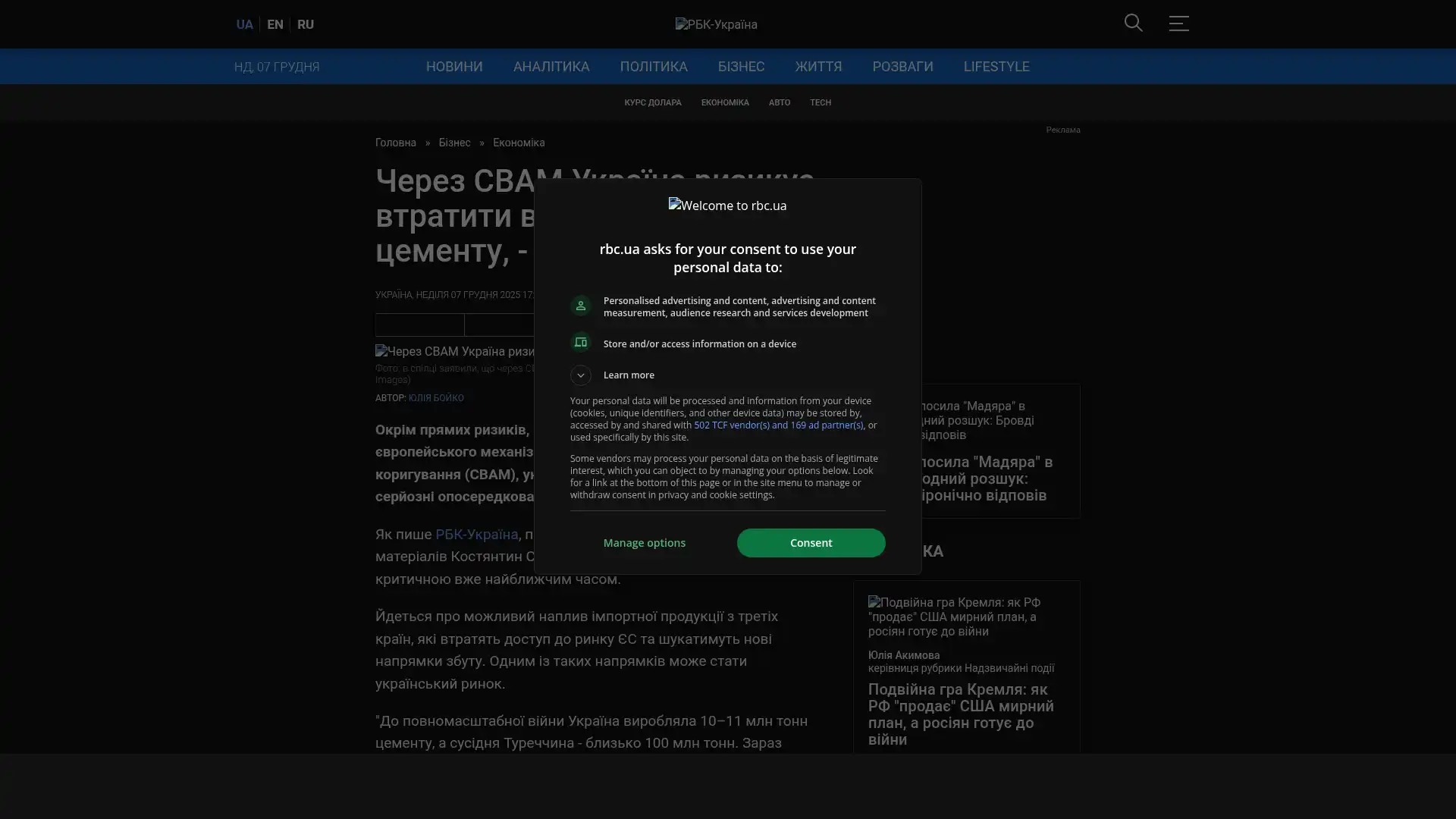 Bildschirmfoto des Originalartikels auf rbc.ua