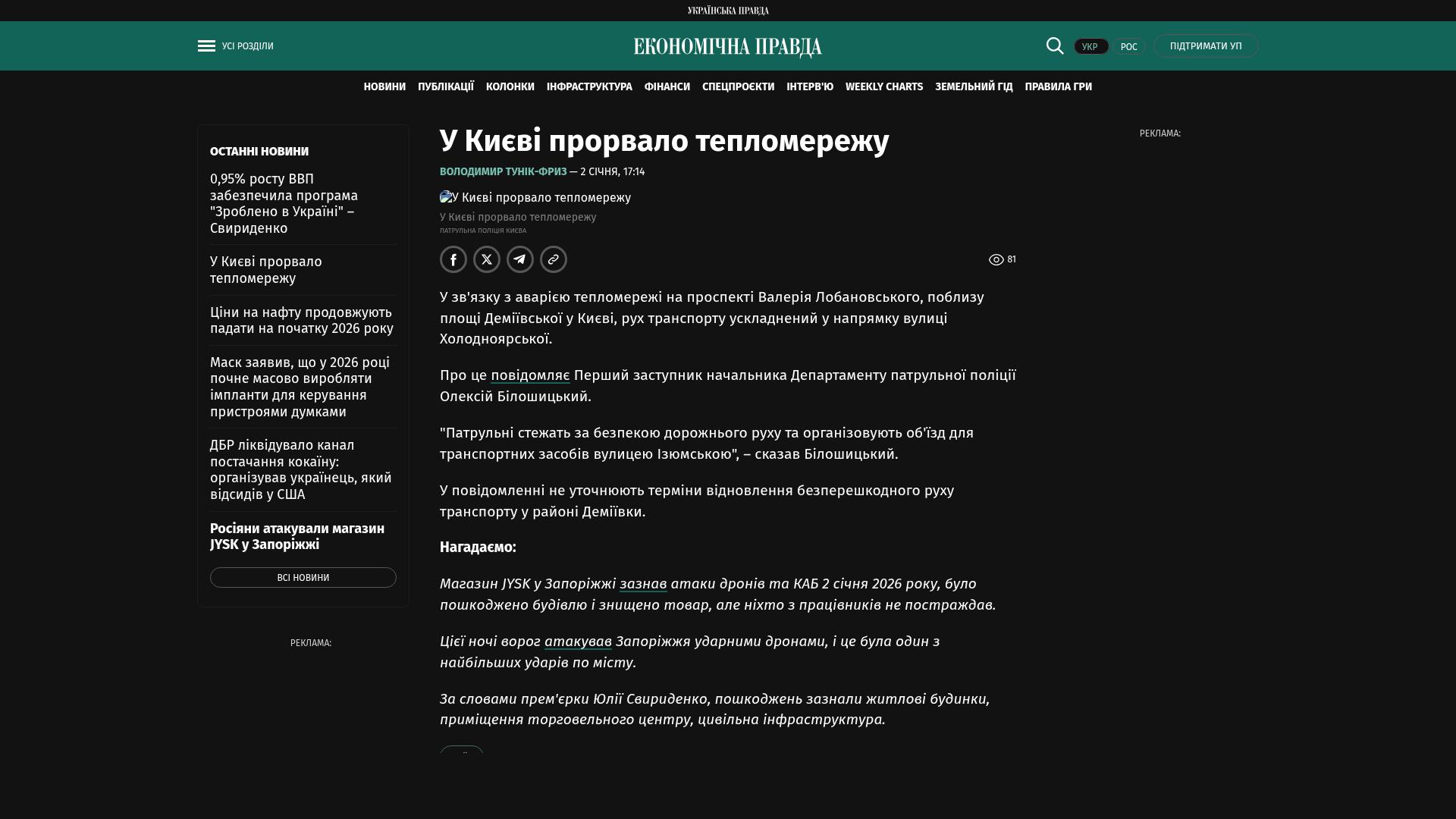 Bildschirmfoto des Originalartikels auf epravda.com.ua