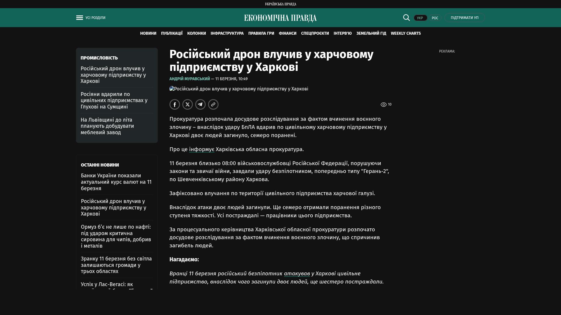 Die Staatsanwaltschaft hat eine vorgerichtliche Untersuchung wegen eines Kriegsverbrechens eingeleitet – infolge des UAV-Angriffs auf ein ziviles Lebensmittelunternehmen in Charkiw sind zwei Menschen ums Leben gekommen und sieben weitere verletzt worden.