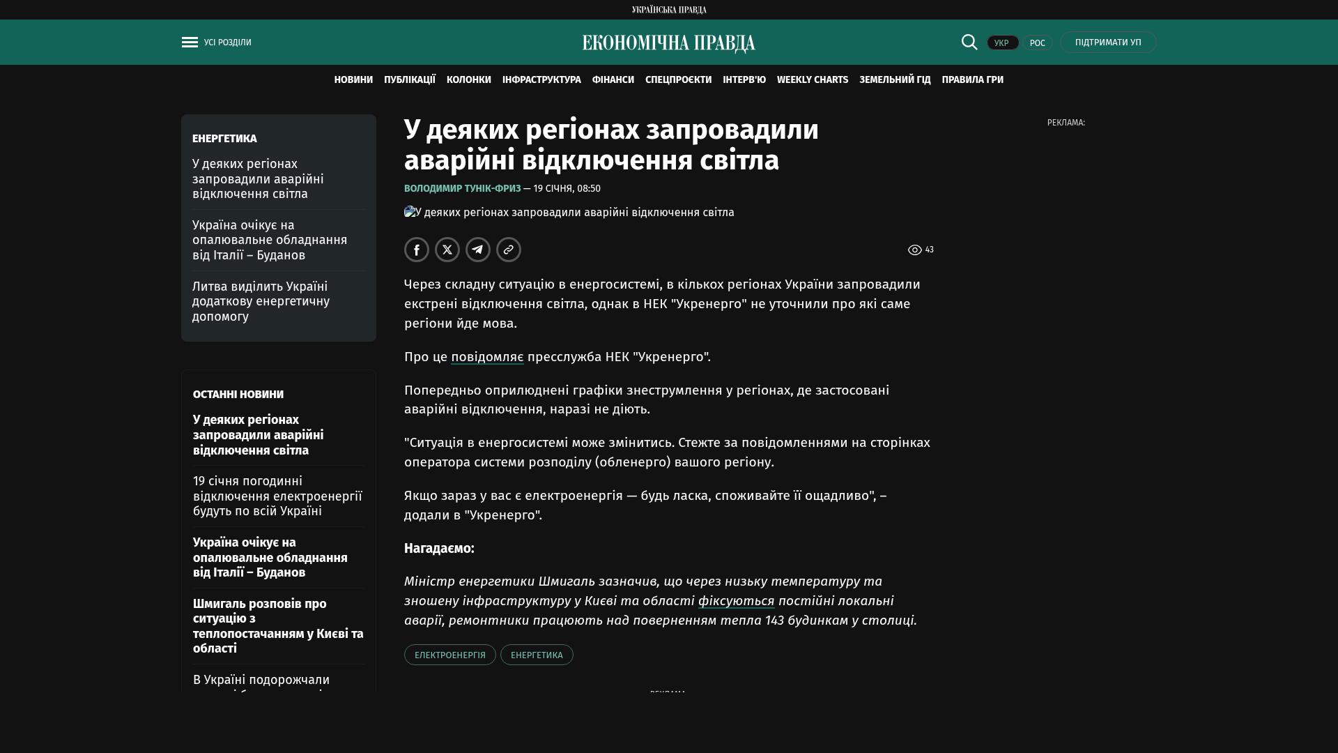 „Die Situation im Stromnetz kann sich ändern. Beachten Sie die Meldungen auf den Seiten des Verteilernetzbetreibers (oblenergo) in Ihrer Region.