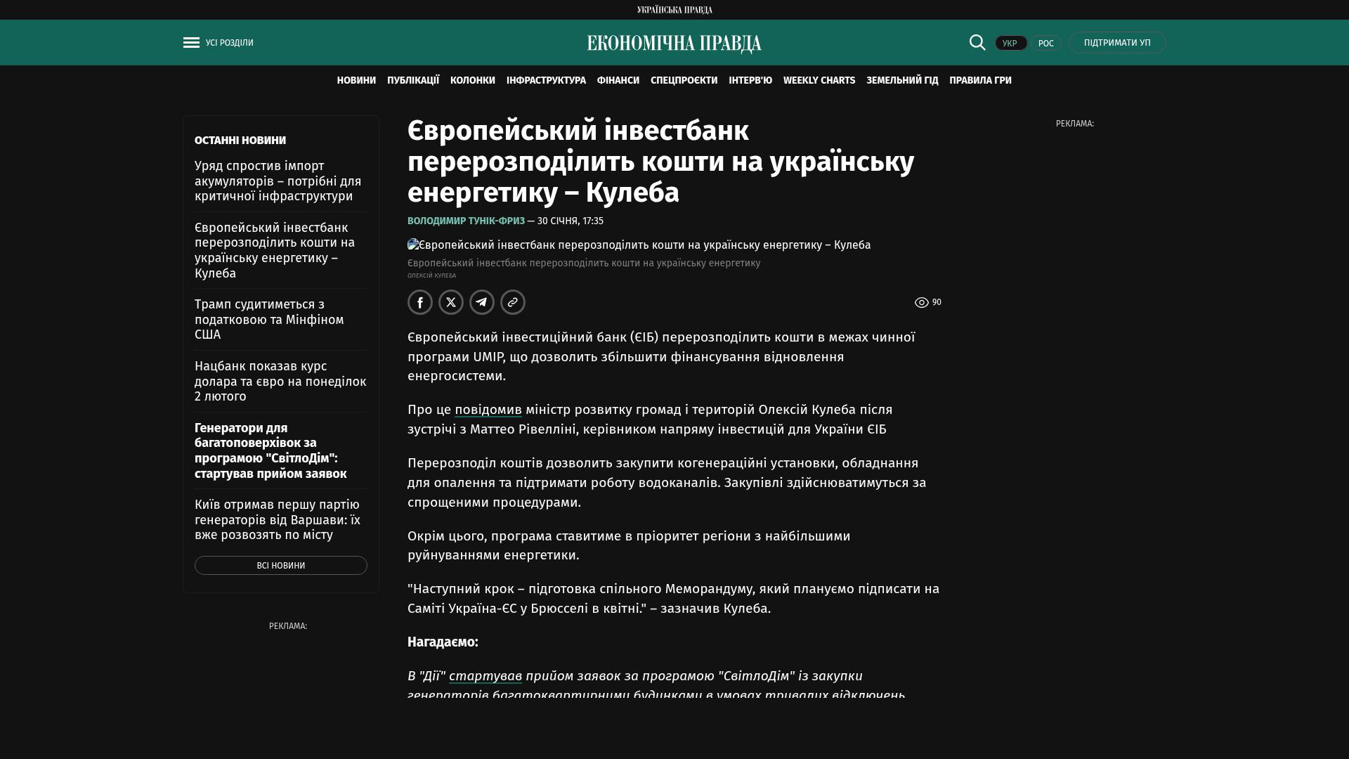 Dies gab der Minister für Gemeinde- und Territorialentwicklung Olexij Kuleba nach einem Treffen mit Matteo Rivellini, dem Leiter der Abteilung für Investitionen in der Ukraine der EIB, bekannt.