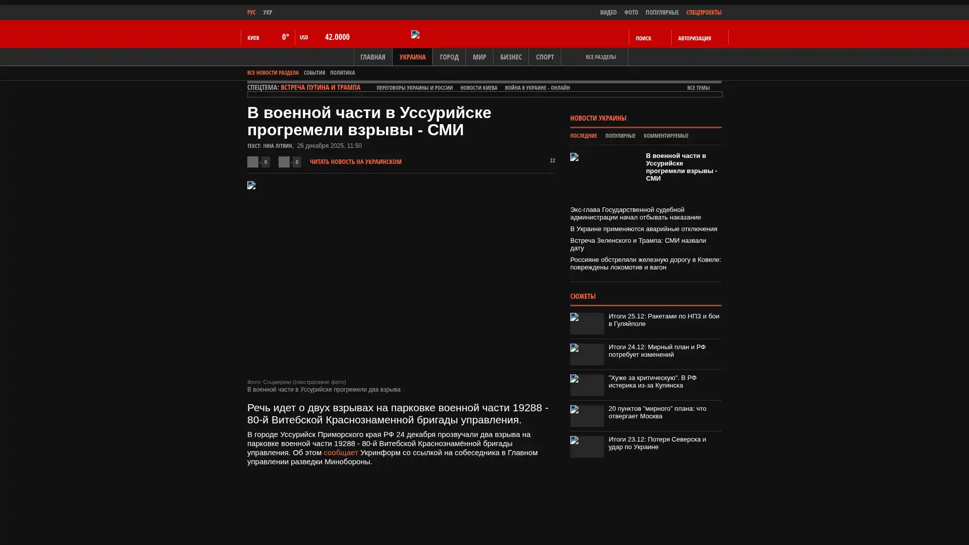 In der Stadt Ussuriysk, Region Primorje der Russischen Föderation, waren am 24. Dezember zwei Explosionen auf dem Parkplatz der Militäreinheit 19288 – der 80. Witebsker Rotbanner-Kommandobrigade – zu hören. Dies berichtet Ukrinform unter Berufung auf einen Gesprächspartner in der Hauptnachrichtendirektion des Verteidigungsministeriums.