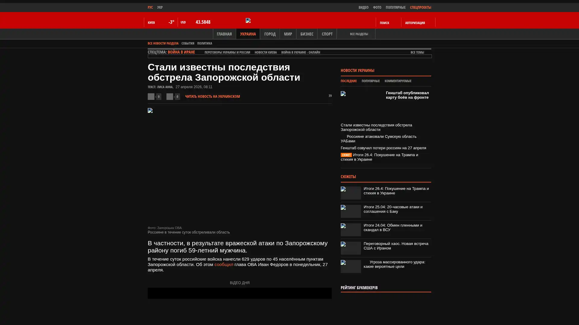 Im Laufe des Tages führten russische Truppen 629 Angriffe auf 45 Ortschaften in der Region Saporischschja durch. Dies teilte der Leiter der regionalen Militärverwaltung, Iwan Fedorow, am Montag, dem 27. April, mit.