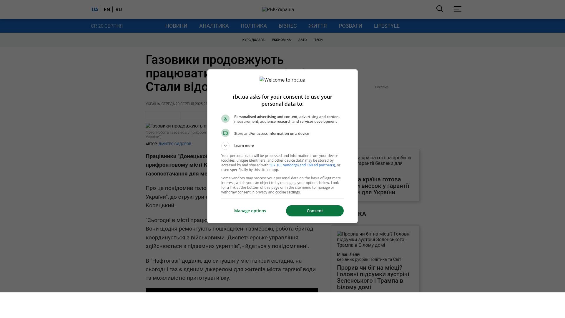 Bildschirmfoto des Originalartikels auf rbc.ua
