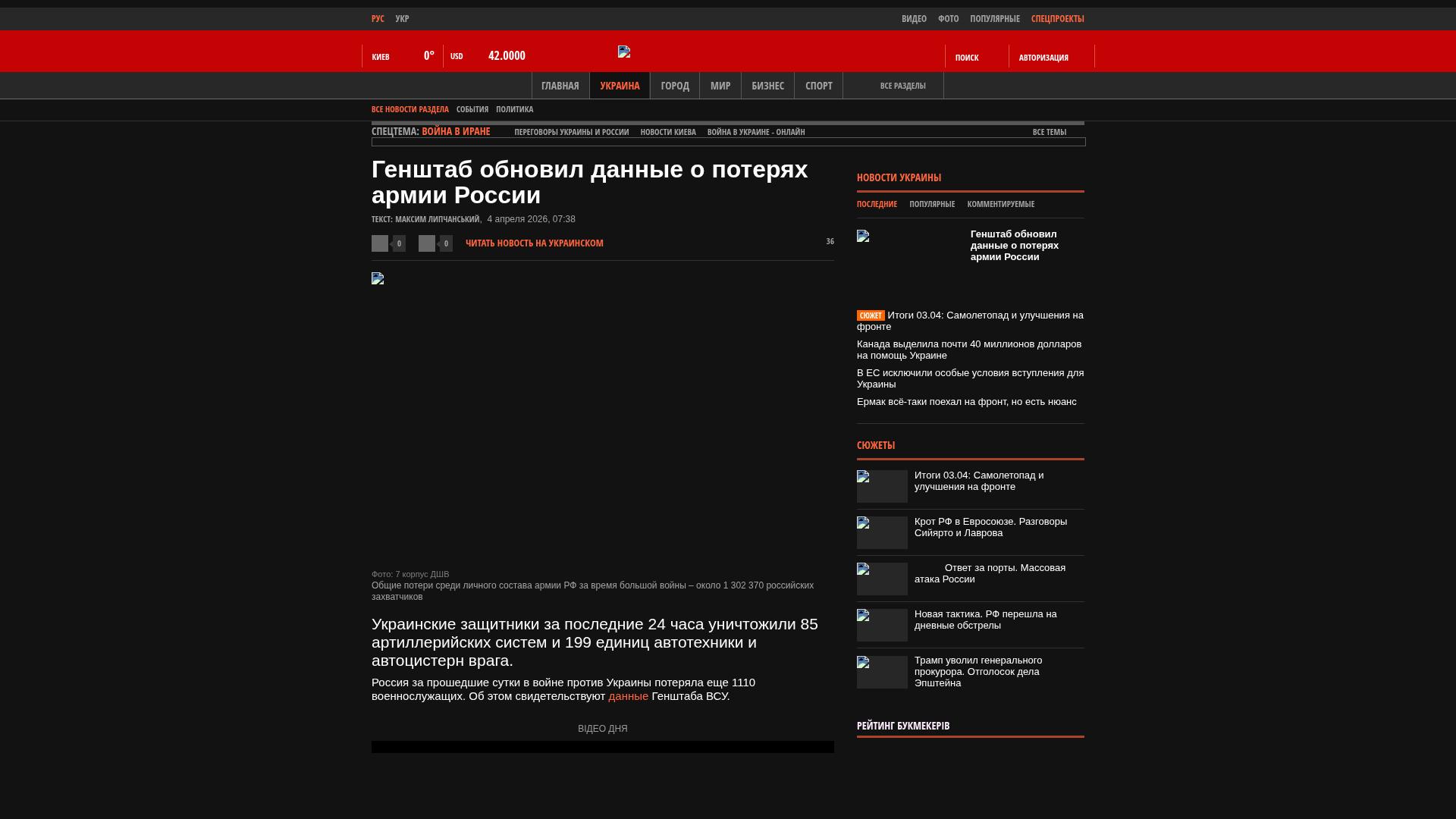 Die gesamten Kampfverluste des Gegners vom 24.02.22 bis zum 04.04.26 beliefen sich schätzungsweise auf: