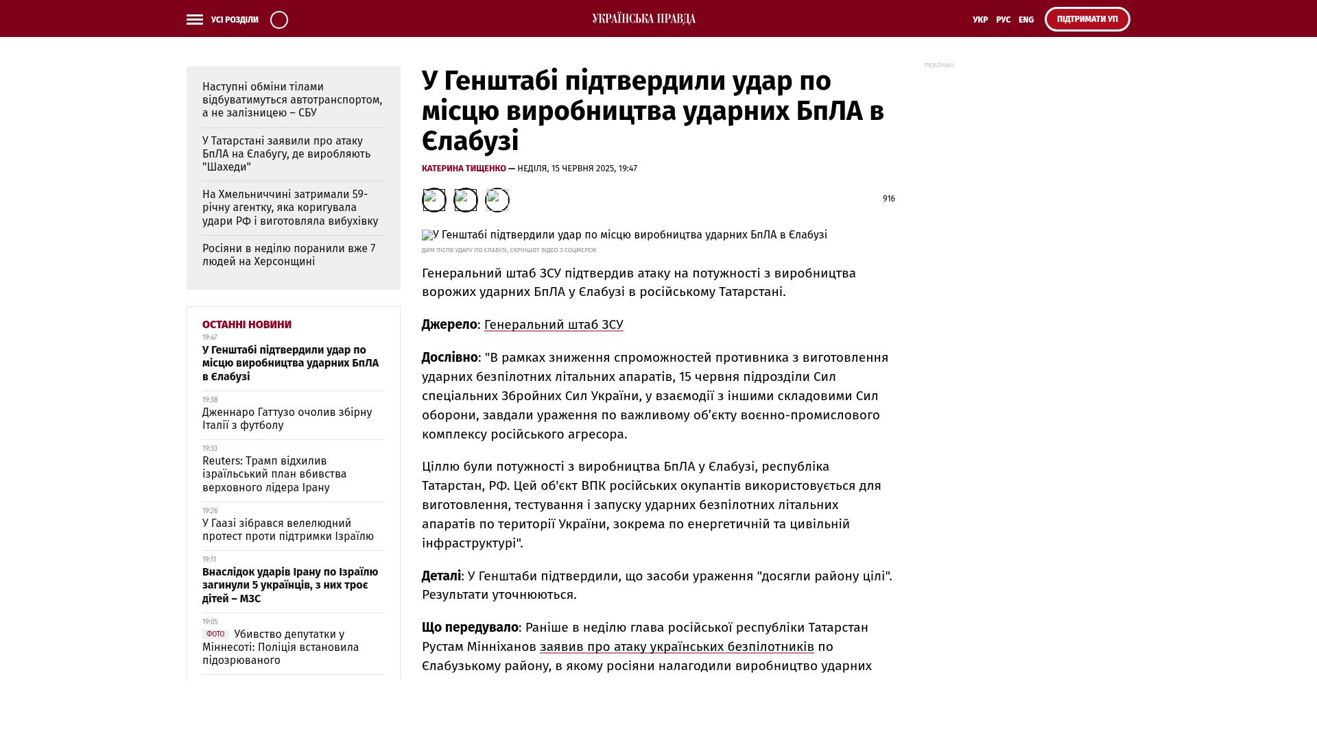 Bildschirmfoto des Originalartikels auf pravda.com.ua