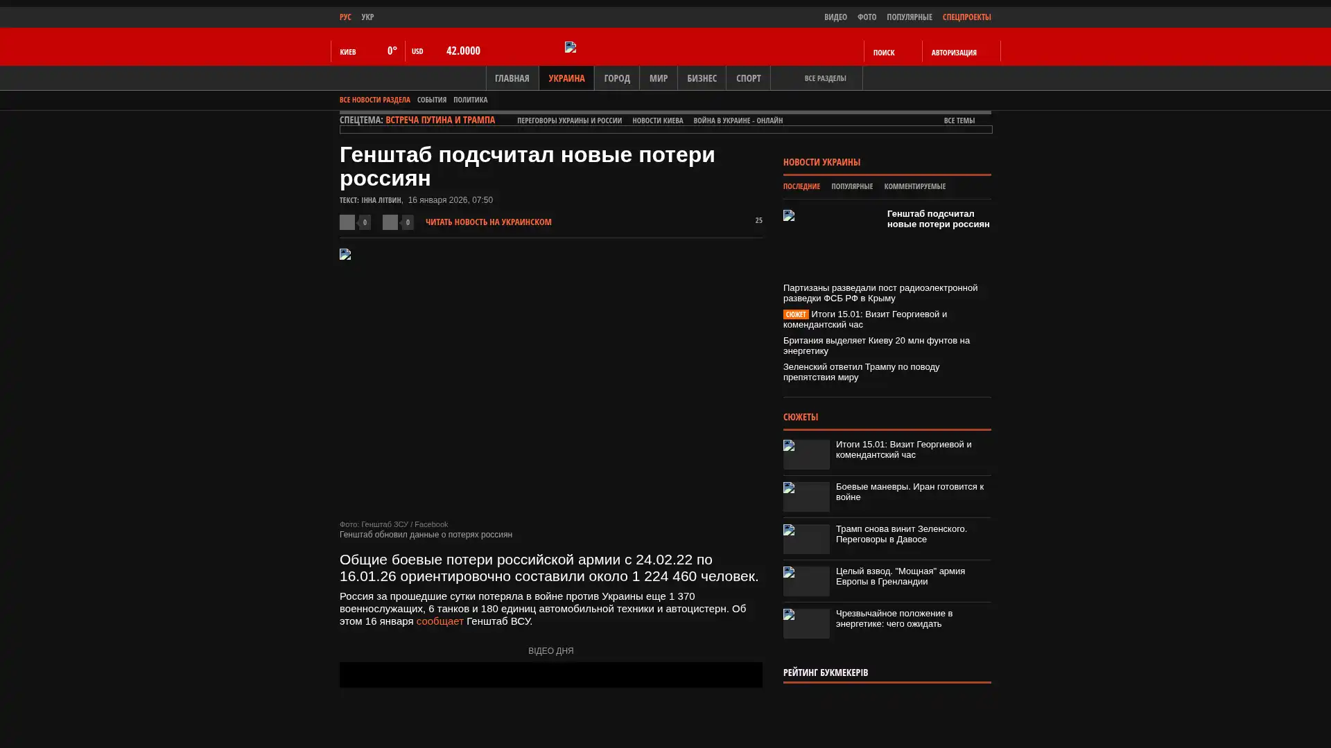 Die gesamten Kampfverluste des Feindes vom 24.02.22 bis zum 16.01.26 beliefen sich vorläufig auf etwa 1.224.460 Menschen.