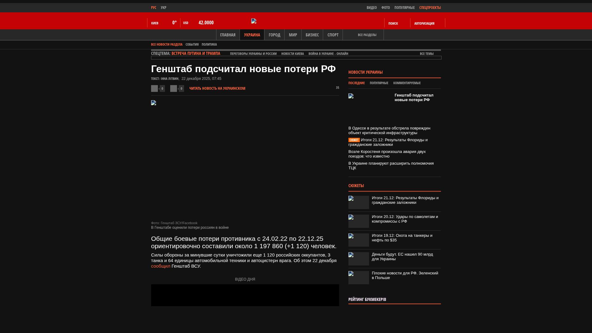Die gesamten Kampfverluste des Feindes vom 24.02.22 bis zum 22.12.25 beliefen sich vorläufig auf etwa 1.197.860 (+1.120) Menschen.