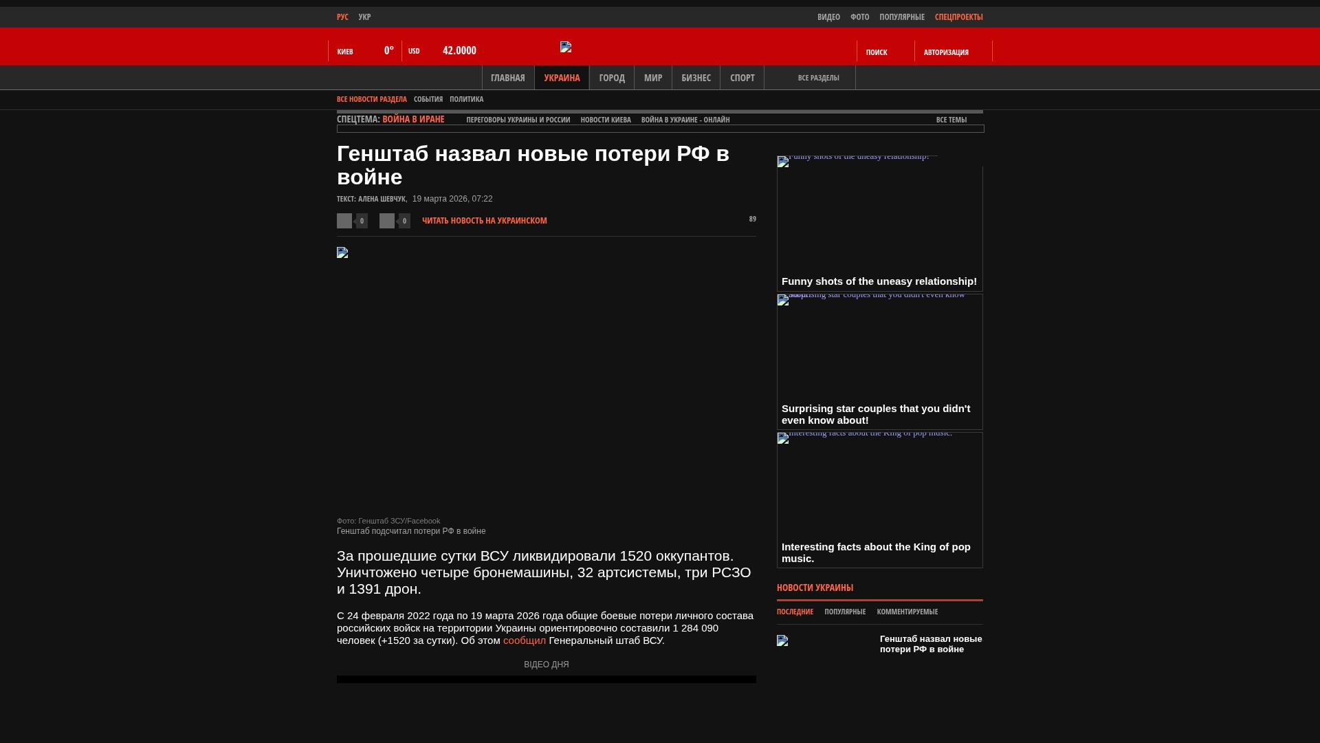 Vom 24. Februar 2022 bis zum 19. März 2026 beliefen sich die Gesamtverluste an Personal der russischen Streitkräfte auf dem Territorium der Ukraine auf schätzungsweise 1.284.090 Personen (+1.520 innerhalb eines Tages). Dies teilte der Generalstab der Streitkräfte der Ukraine mit.