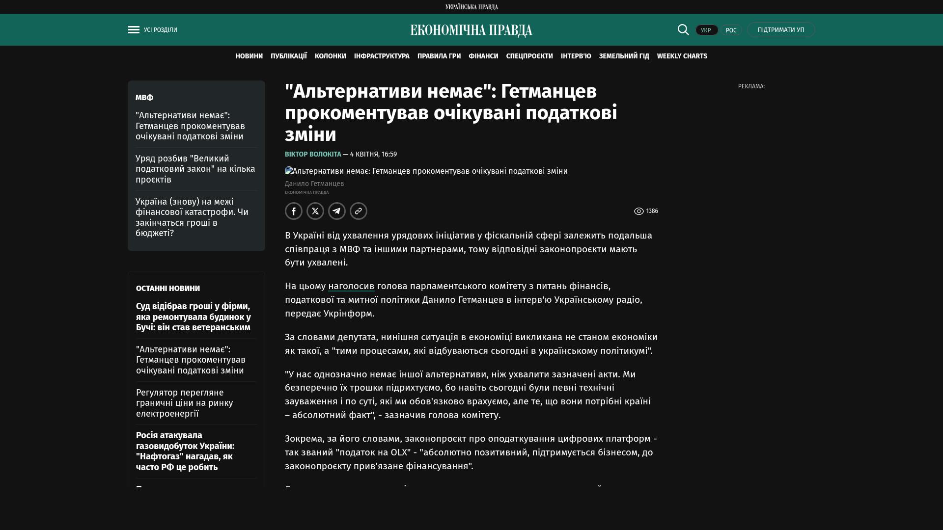 Bildschirmfoto des Originalartikels auf epravda.com.ua