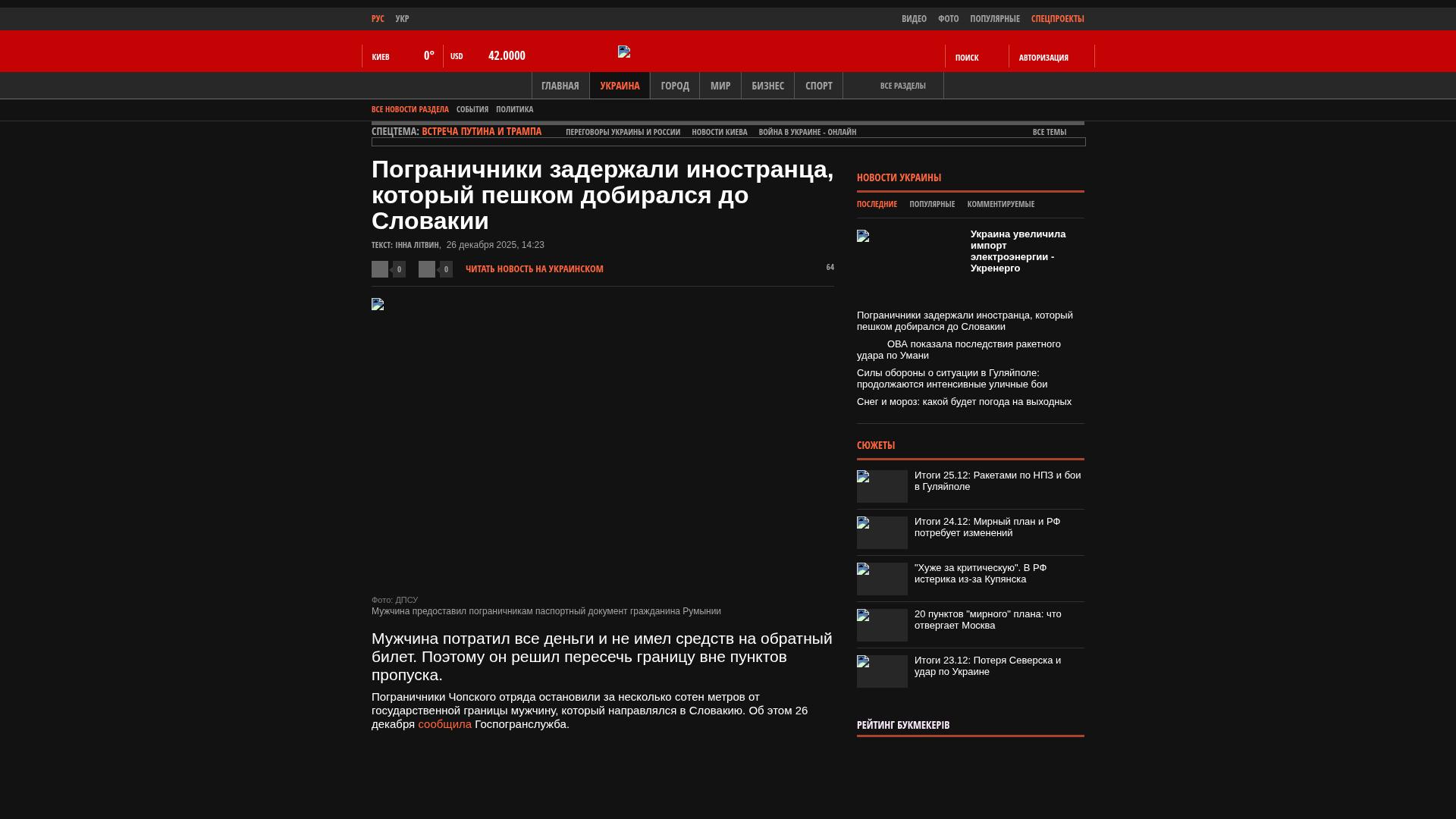 Grenzschutzbeamte der Abteilung Tschop hielten einen Mann, der auf dem Weg in die Slowakei war, einige hundert Meter vor der Staatsgrenze an. Dies wurde vom staatlichen Grenzdienst am 26. Dezember gemeldet.