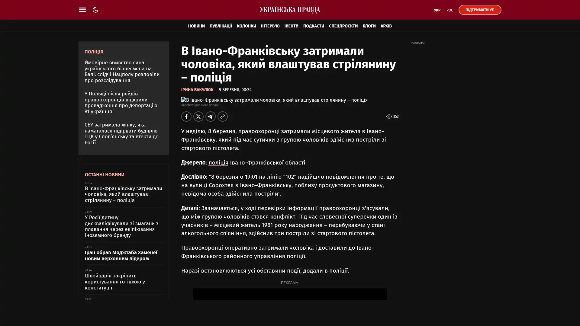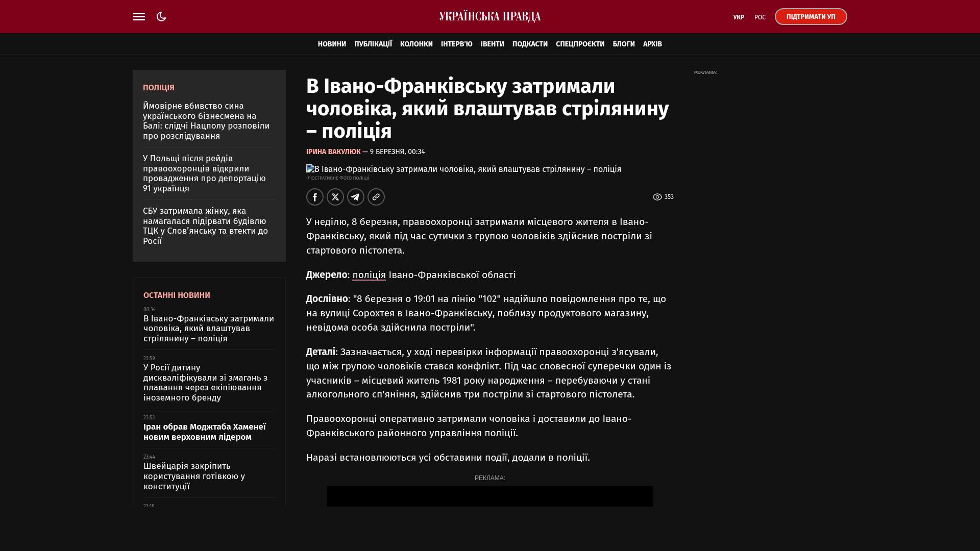 Wörtlich: : „Am 8. März um 19:01 Uhr ging bei der Notrufnummer „102“ eine Meldung ein, dass auf der Sorokhteya-Straße in Iwano-Frankiwsk in der Nähe eines Lebensmittelladens eine unbekannte Person Schüsse abgegeben habe.“
