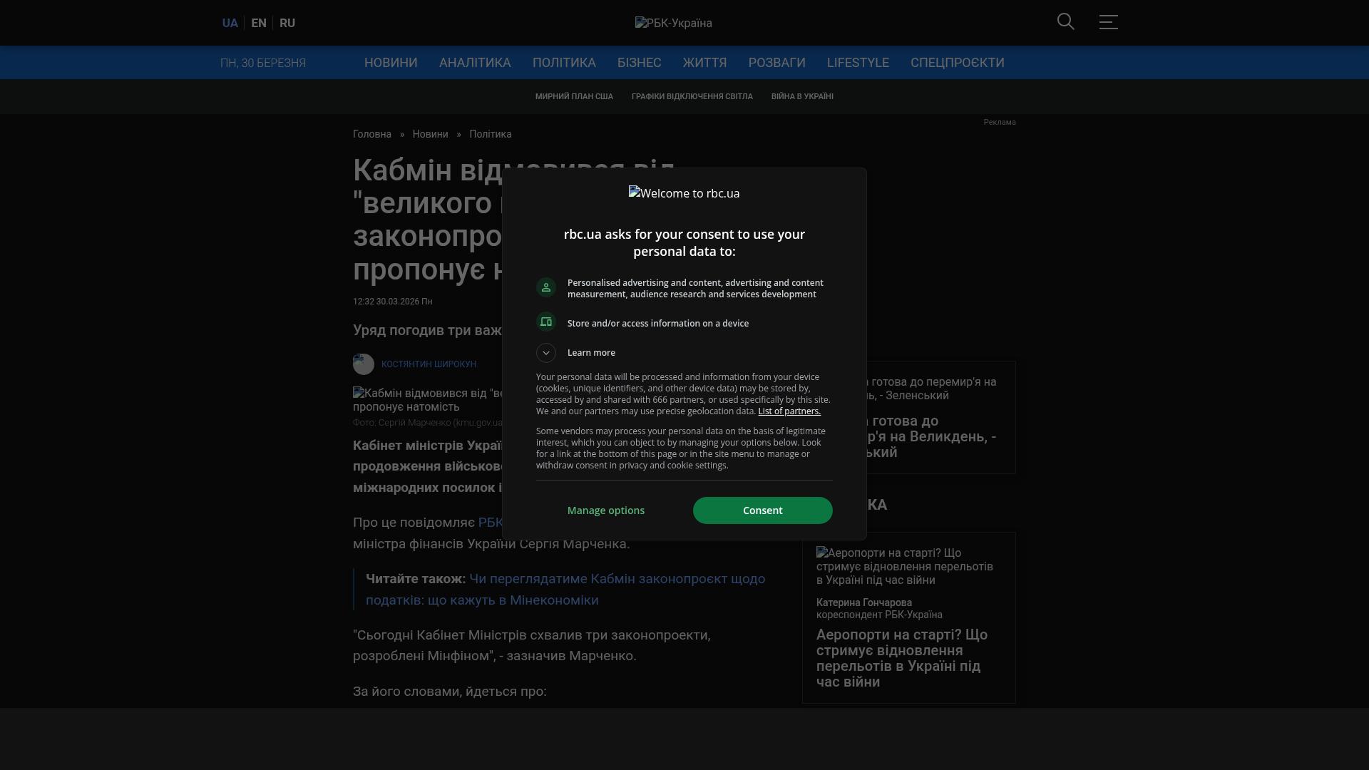 Bildschirmfoto des Originalartikels auf rbc.ua