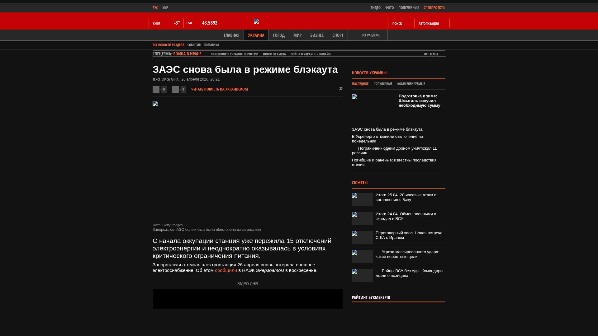 Das Kernkraftwerk Saporischschja verlor am 26. April erneut die externe Stromversorgung. Dies teilte die NAEK Energoatom am Sonntag mit.