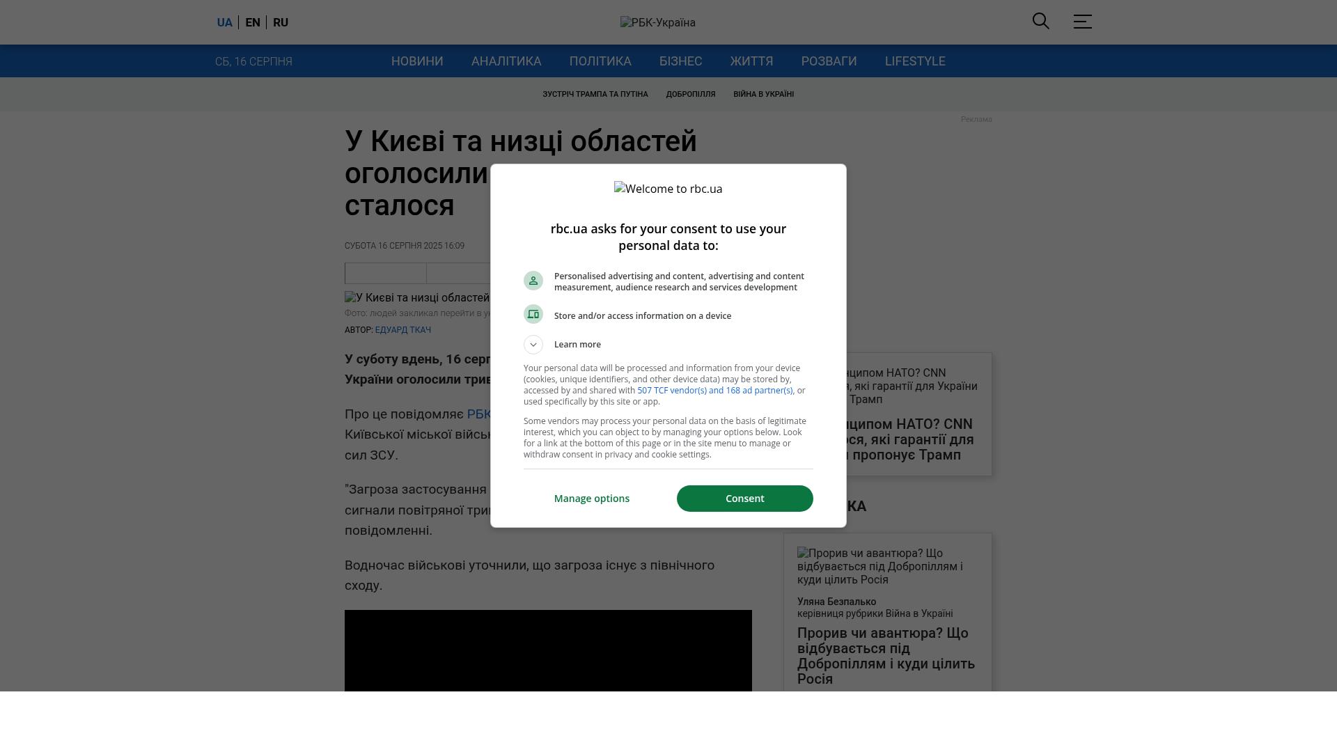 Bildschirmfoto des Originalartikels auf rbc.ua
