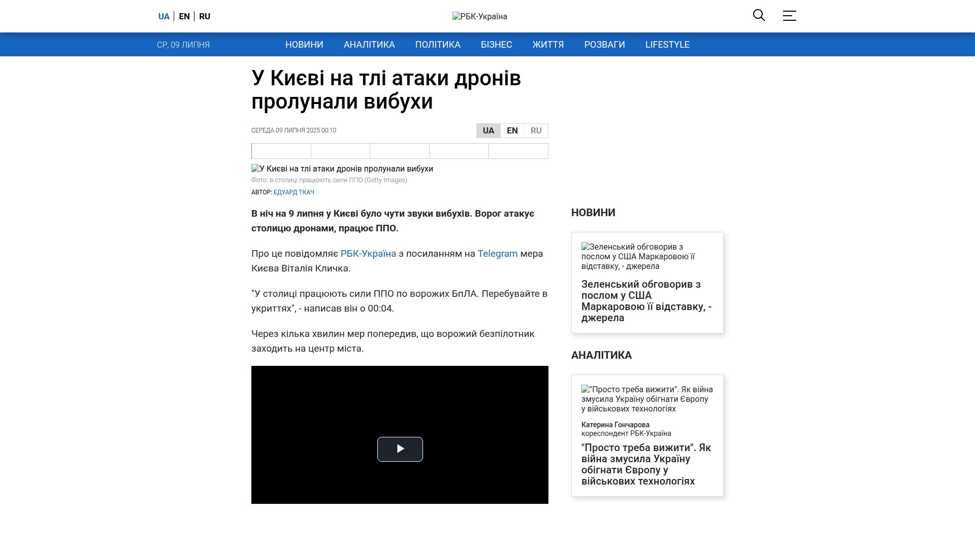 Bildschirmfoto des Originalartikels auf rbc.ua