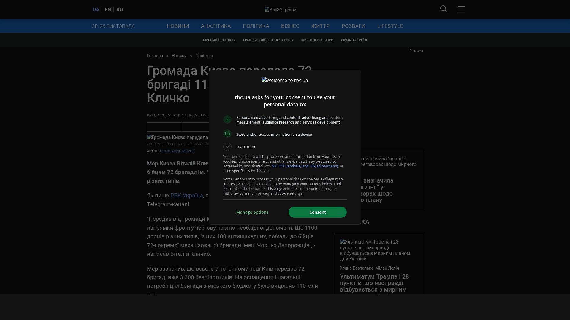 Bildschirmfoto des Originalartikels auf rbc.ua