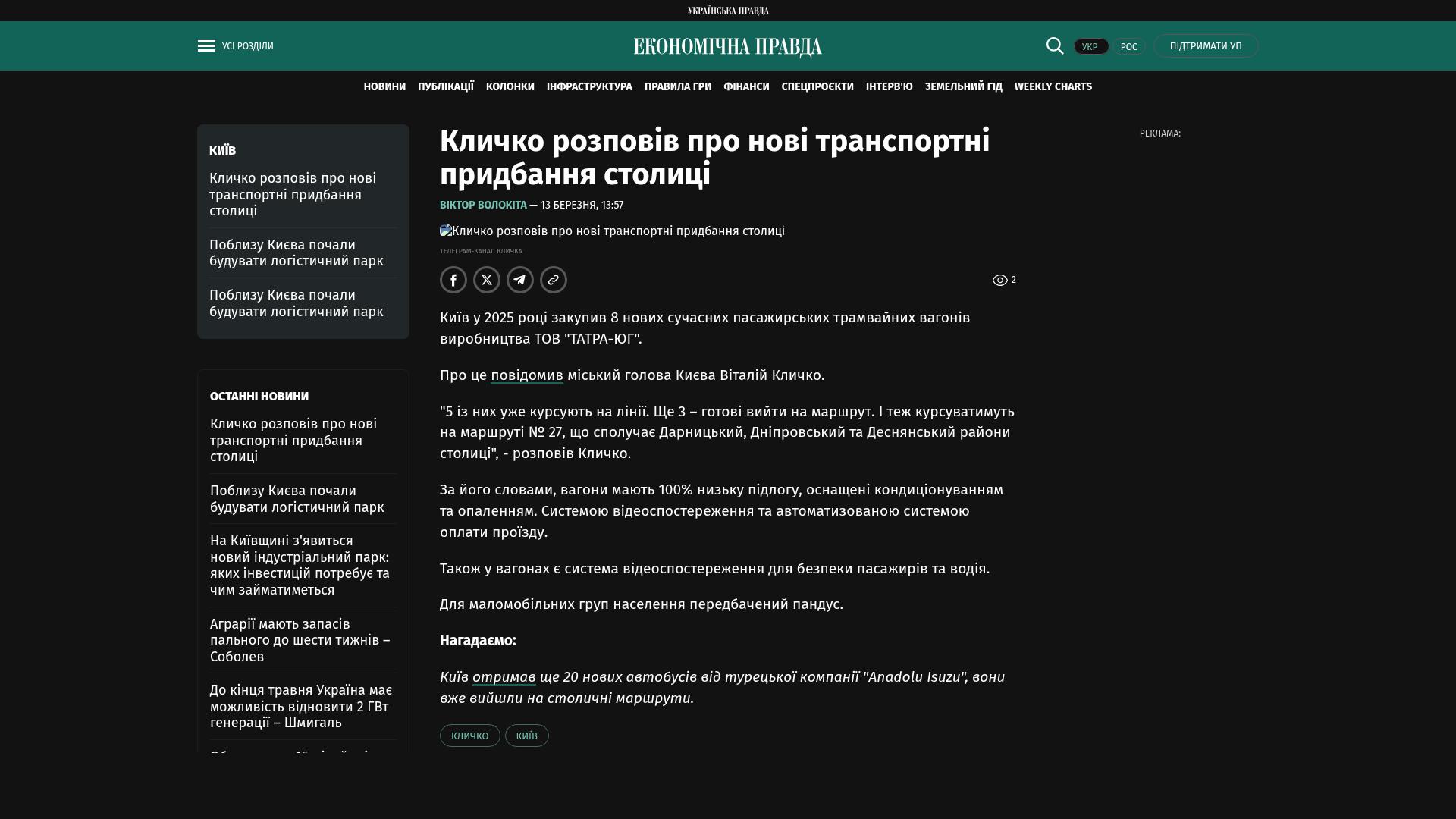 Bildschirmfoto des Originalartikels auf epravda.com.ua