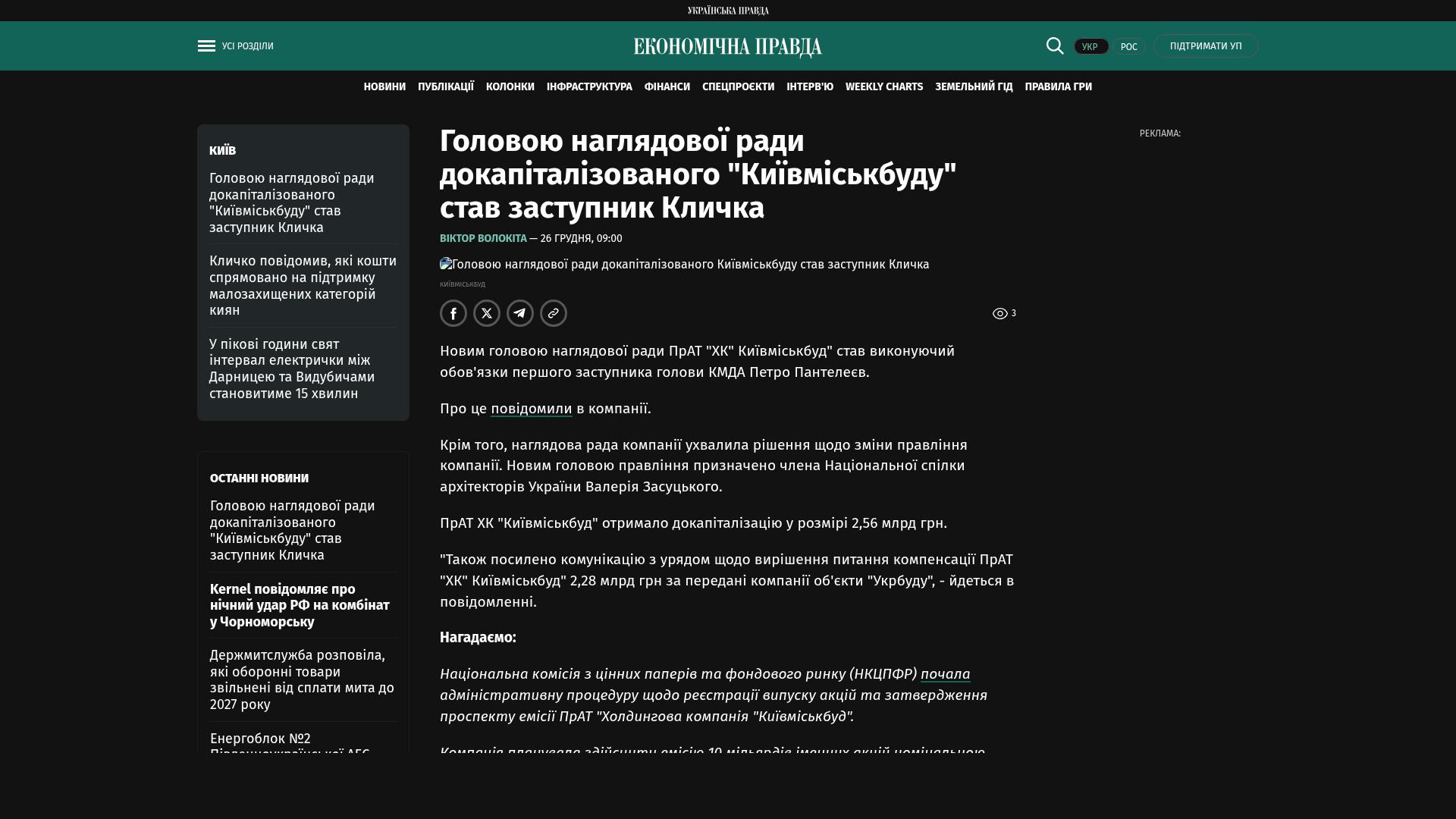 PrJSC HC „Kyjiwmiskbud“ erhielt eine zusätzliche Kapitalisierung in Höhe von 2,56 Milliarden Hrywnja.