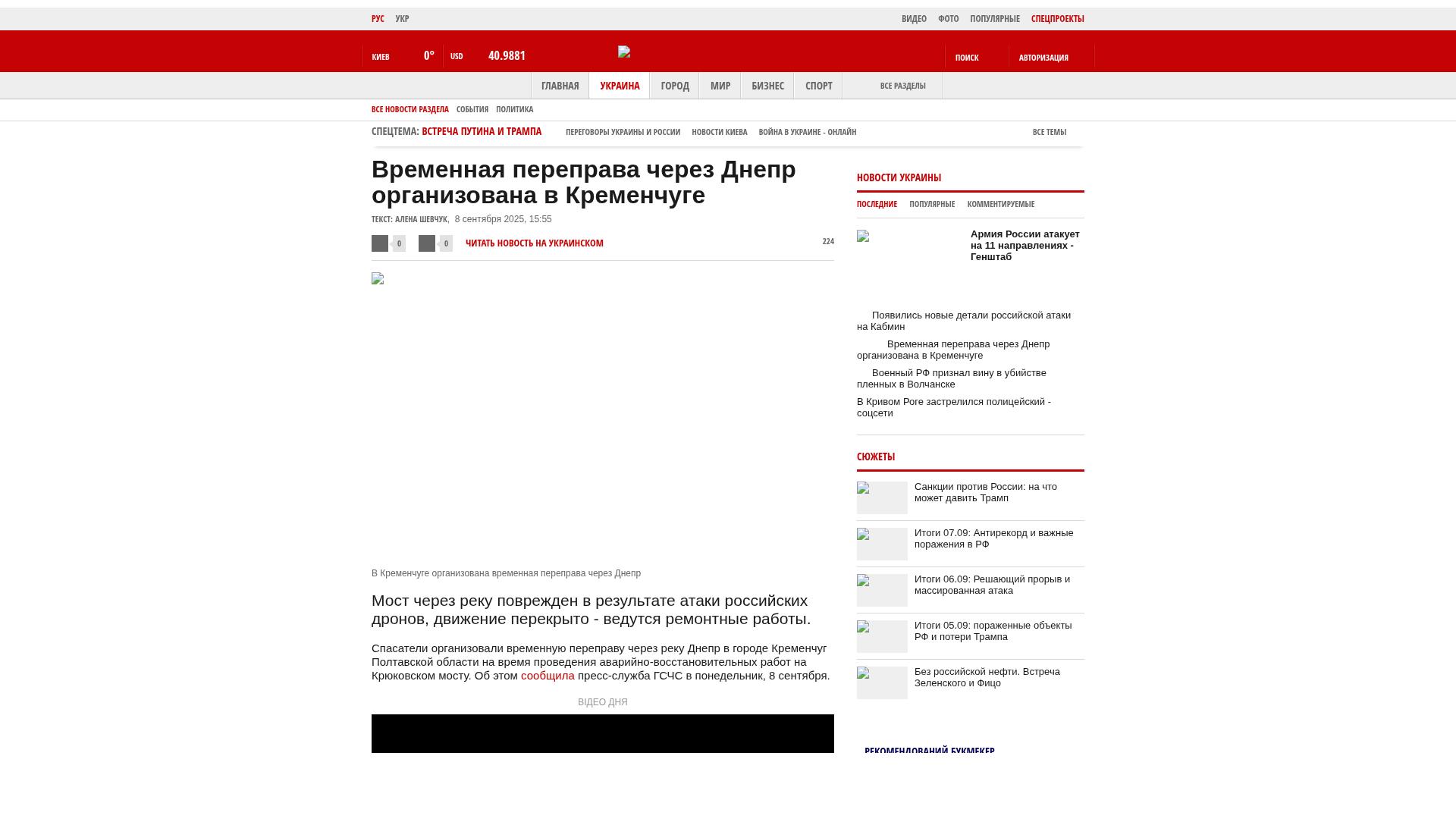Wir möchten Sie daran erinnern, dass russische Truppen in der Nacht des 8. September die Verkehrsinfrastruktur von Krementschuk angegriffen und versucht haben, die Dnjepr-Überquerung zu beschädigen. Der Straßenbelag auf der Kryukivskyj-Brücke wurde beschädigt.
