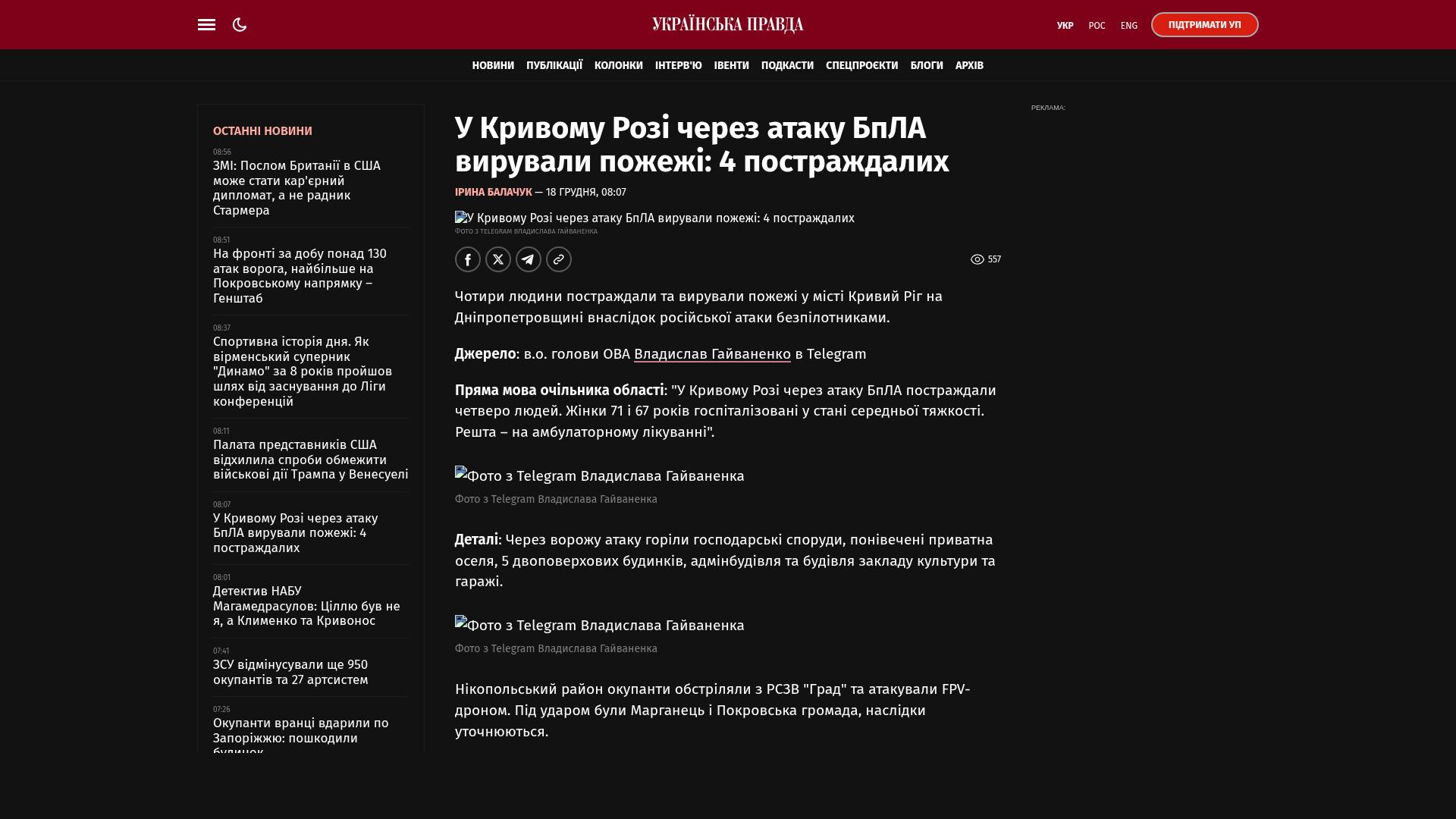 Bildschirmfoto des Originalartikels auf pravda.com.ua
