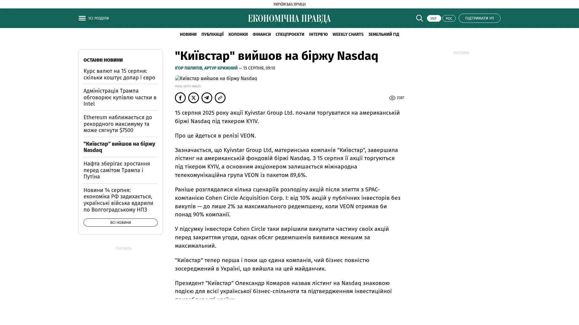 Es wird darauf hingewiesen, dass die Kyjiwstar Group Ltd, die Muttergesellschaft von Kyjiwstar, ihre Notierung an der Nasdaq Stock Exchange abgeschlossen hat. Seit dem 15. August werden die Aktien unter dem Tickersymbol KYIV gehandelt, und der internationale Telekommunikationskonzern VEON bleibt mit einem Anteil von 89,6 % der größte Aktionär.