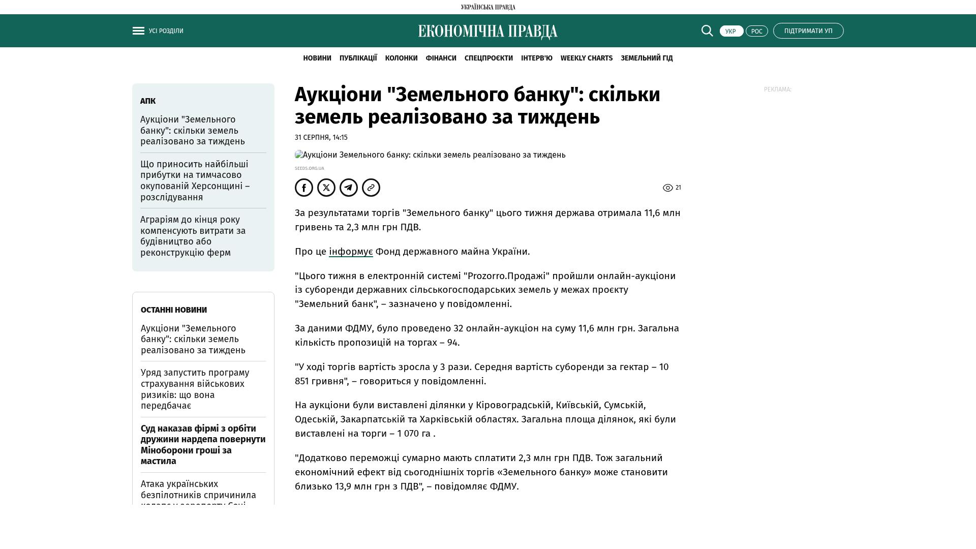 Zuvor wurde berichtet, dass im ersten Jahr der Tätigkeit des staatlichen Betreibers Land Bank Auktionen für die Unterverpachtung von staatlichem Agrarland mit einer Gesamtfläche von 68,5 Tausend Hektar angekündigt wurden, Gebote für 64,5 Tausend Hektar durchgeführt wurden und 53,2 Tausend Hektar staatliches Land an Landwirte zur legalen Nutzung übertragen wurden.