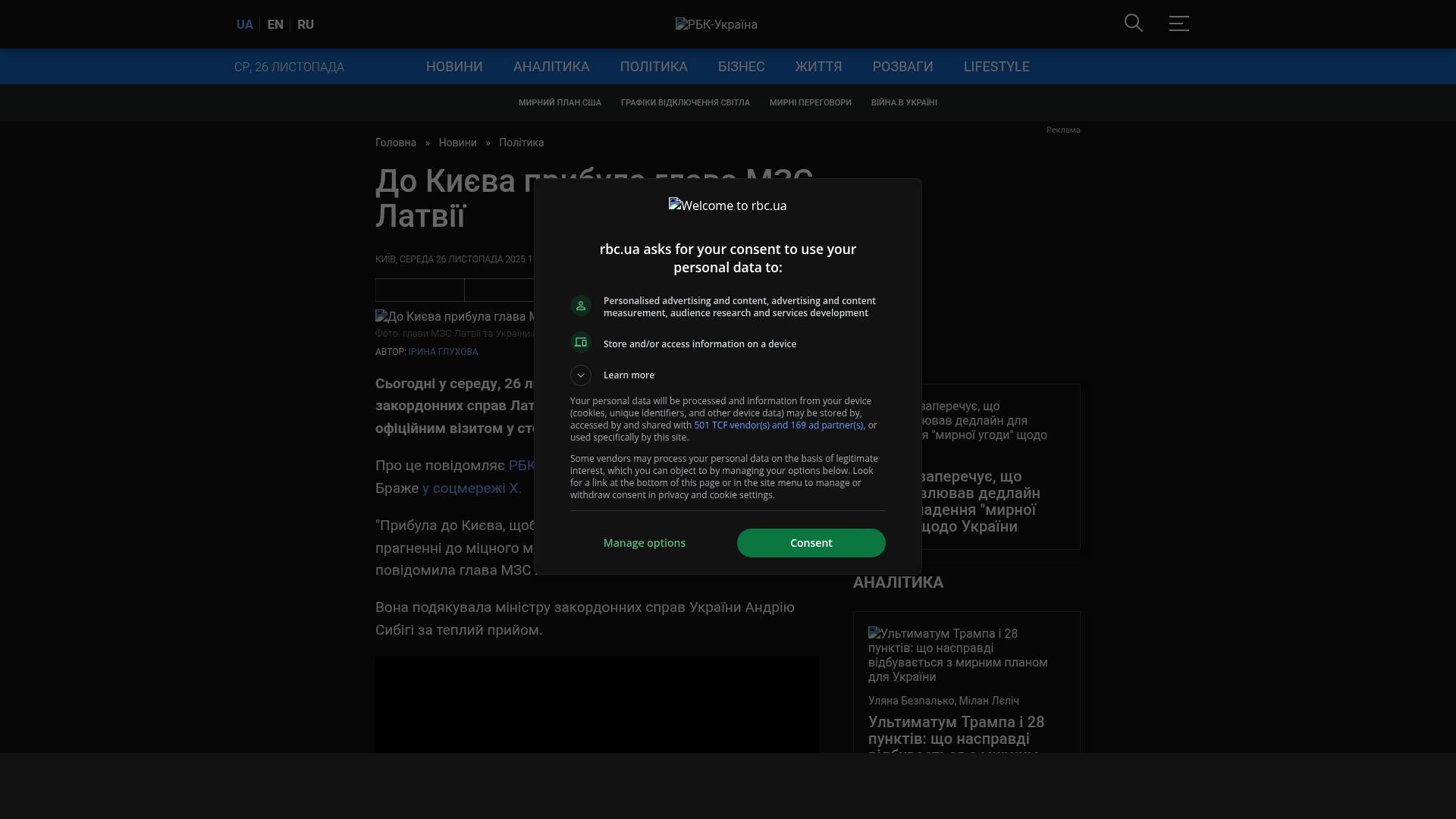 Am Mittwoch, den 26. November, ist die lettische Außenministerin Baiba Braže in Kiew eingetroffen. Sie befindet sich zu einem offiziellen Besuch in der Hauptstadt.