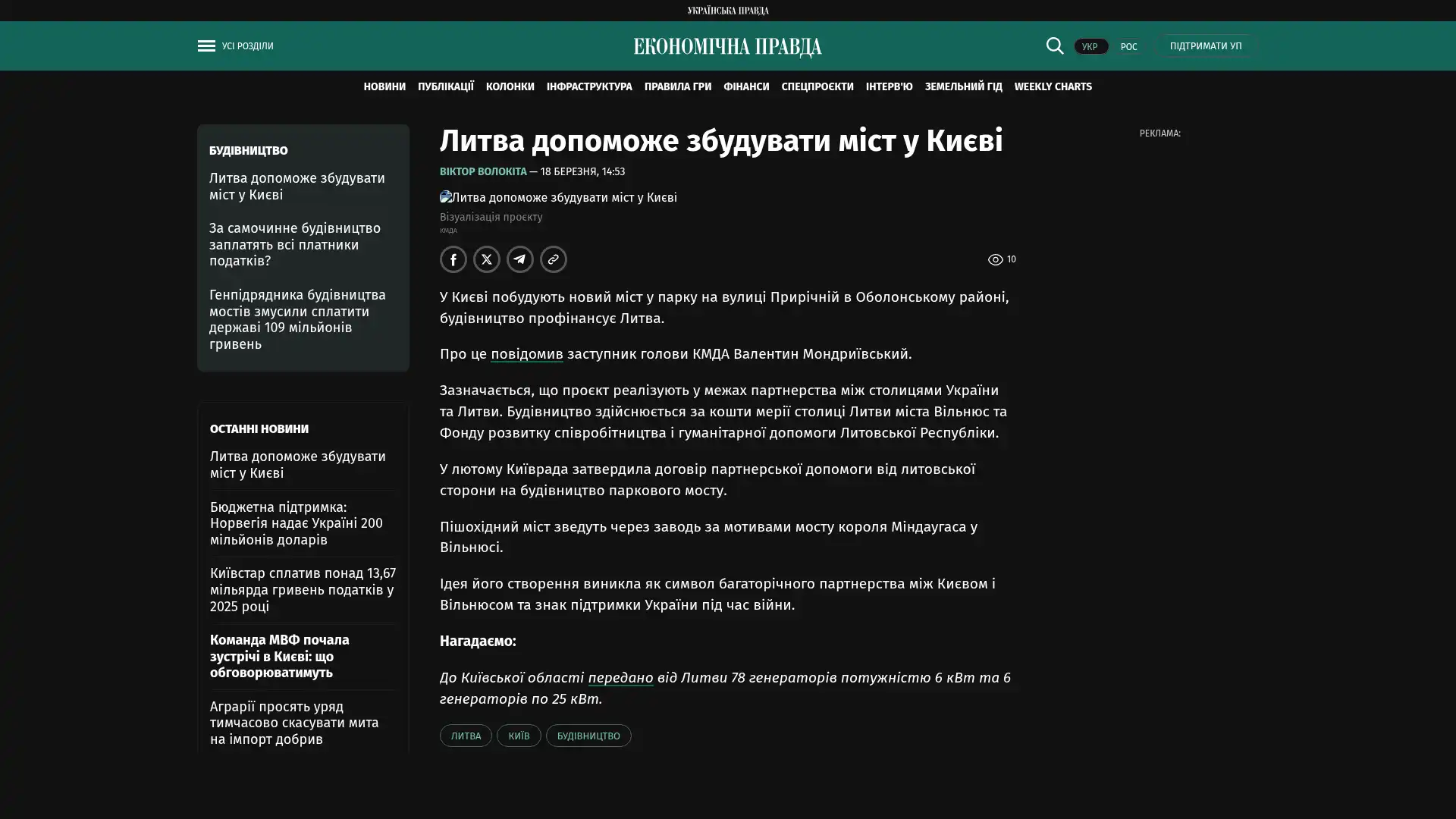 In Kiew wird eine neue Brücke im Park an der Pririchna-Straße im Bezirk Obolon gebaut; die Baukosten werden von Litauen finanziert.