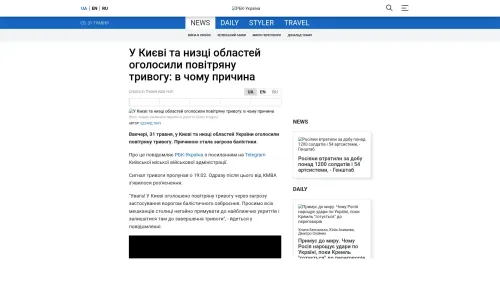 Am Abend des 31. Mai wurde in Kiew und einer Reihe von ukrainischen Regionen Luftalarm ausgerufen. Der Grund dafür war die Bedrohung durch ballistische Raketen.