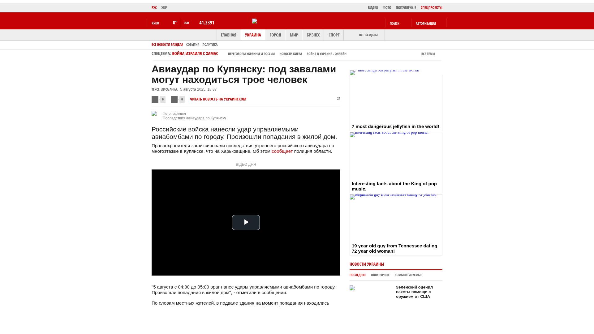 „Am 5. August zwischen 04:30 und 05:00 Uhr schlug der Feind mit gelenkten Luftbomben auf die Stadt ein. Es gab Treffer in einem Wohnhaus“, heißt es in der Meldung.