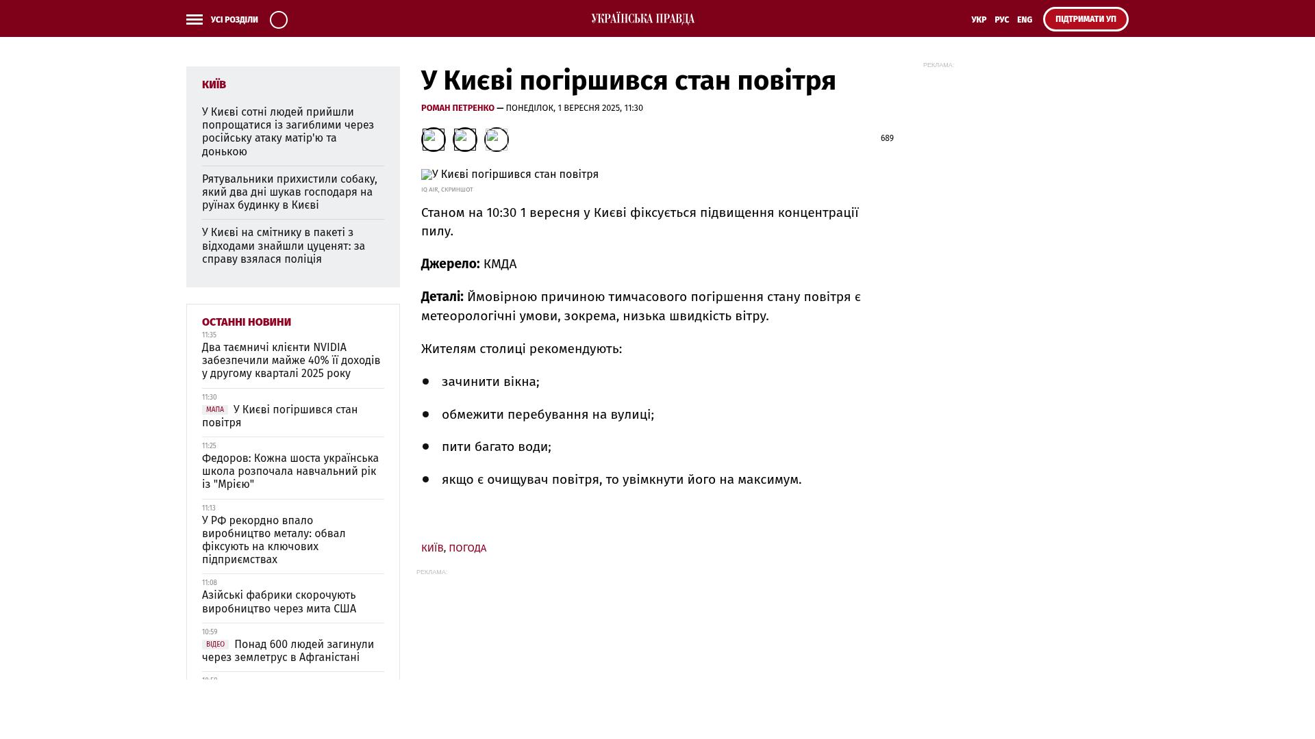 Ab 10:30 Uhr am 1. September wurde in Kiew ein Anstieg der Staubkonzentration festgestellt.