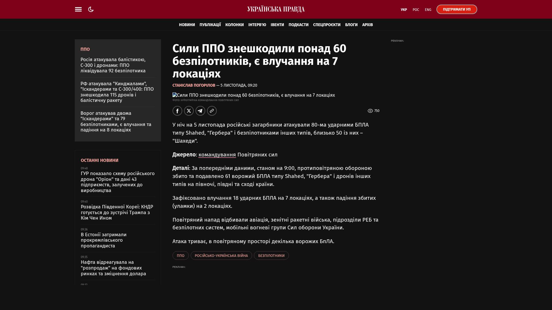 Bildschirmfoto des Originalartikels auf pravda.com.ua