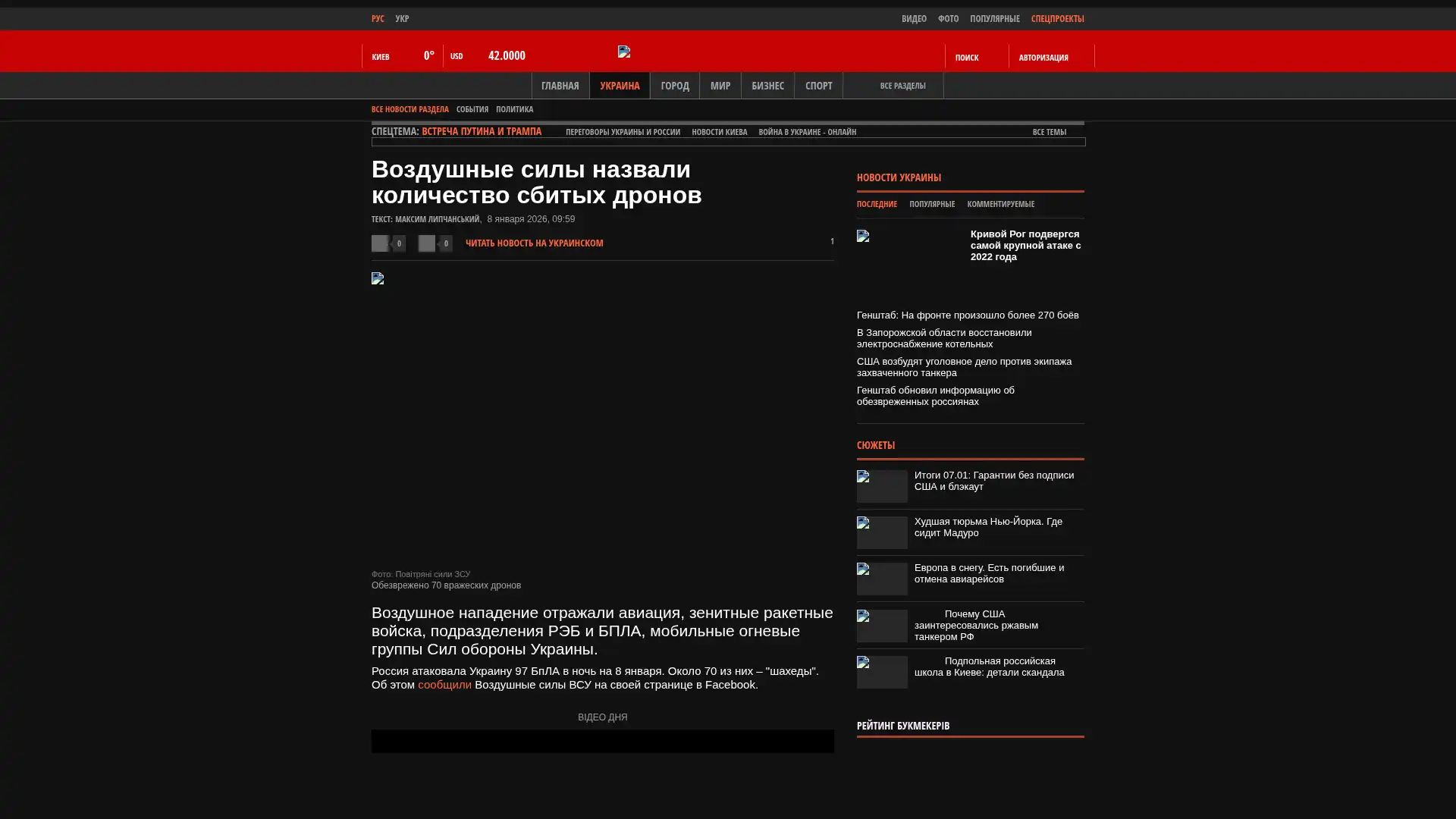 Russland hat die Ukraine in der Nacht des 8. Januar mit 97 Drohnen angegriffen. Etwa 70 davon sind „Schaheds“. Dies berichtete die Luftwaffe der Streitkräfte der Ukraine auf ihrer Seite auf Facebook.