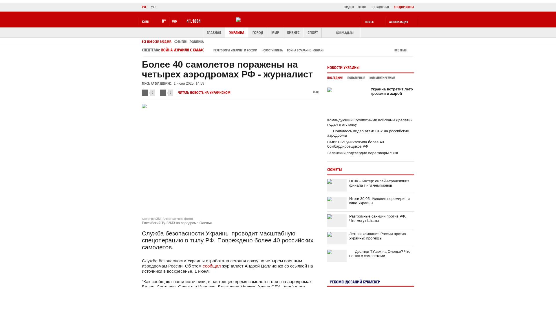Der Sicherheitsdienst der Ukraine führt eine groß angelegte Sonderoperation im Hinterland der Russischen Föderation durch. Mehr als 40 russische Flugzeuge wurden beschädigt.