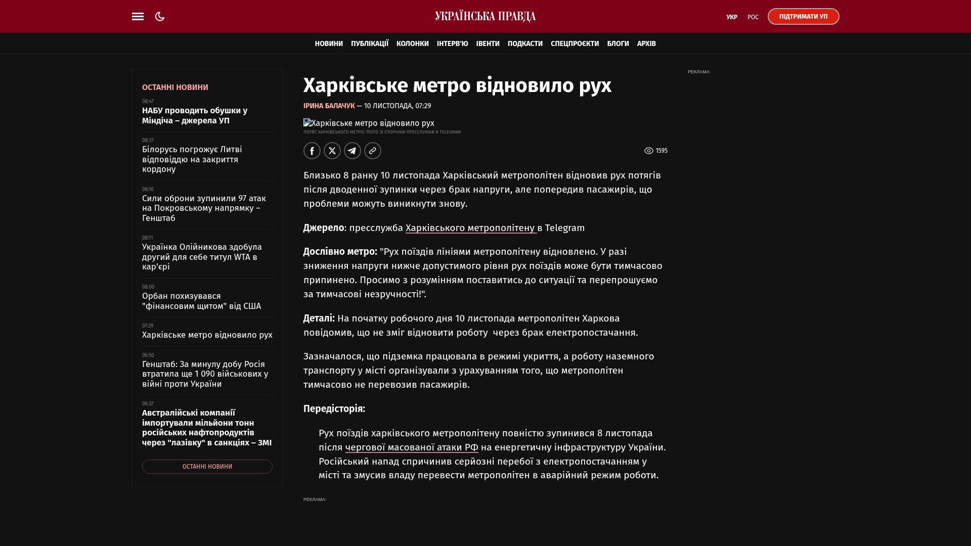Am 10. November gegen 8 Uhr morgens hat die Metro Charkiw den Zugverkehr nach einem zweitägigen Stromausfall wieder aufgenommen, warnte aber die Fahrgäste, dass erneut Probleme auftreten könnten.