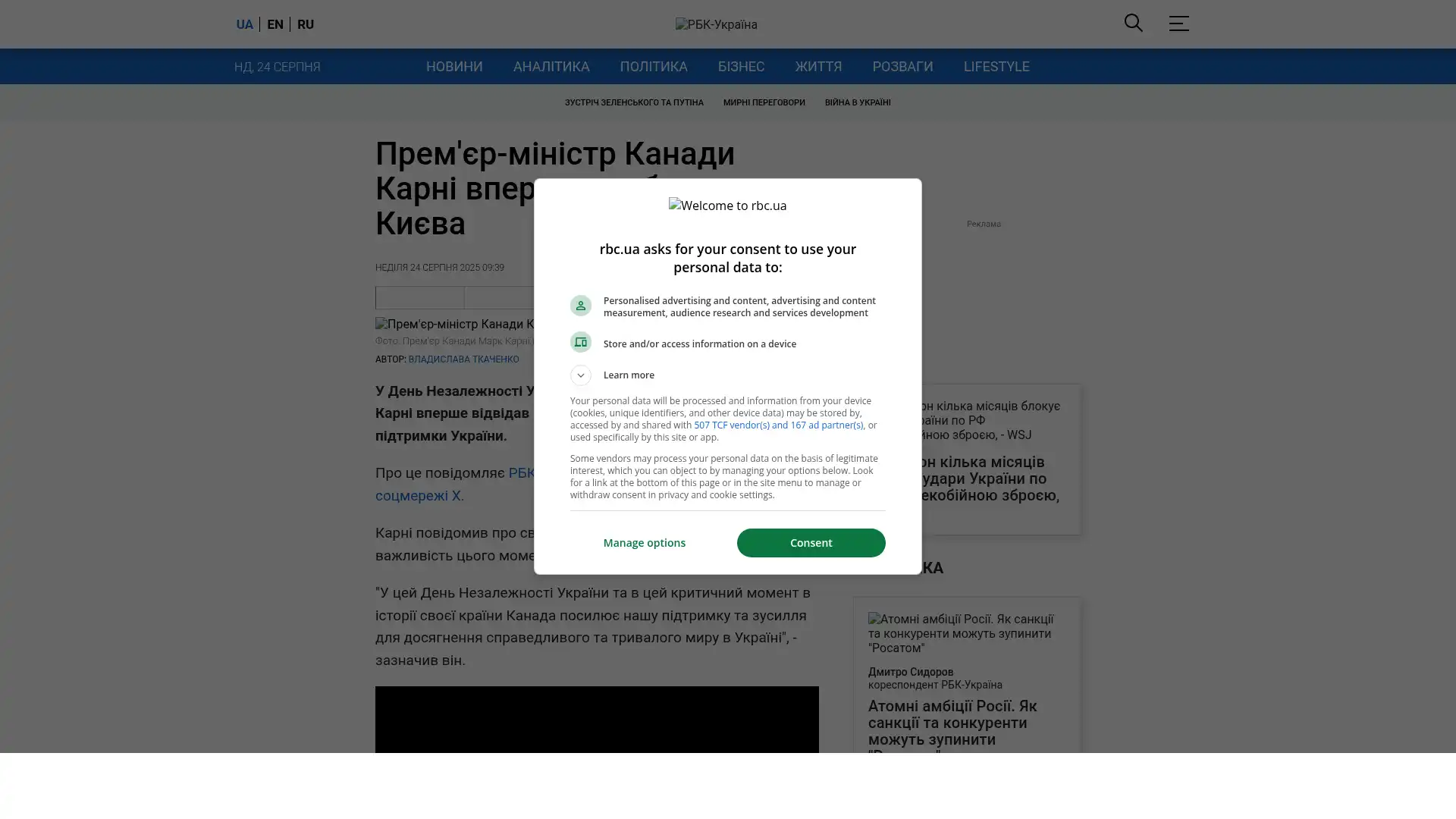 Das berichtet RBK Ukrajina unter Berufung auf eine Erklärung Carneys in den sozialen Medien X.